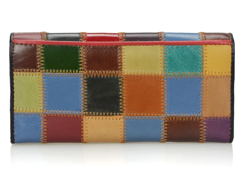 Dreamlizer Fashion Patchwork Women Wallets Long Genuine Leather Purse Female Colorful Female Day Clutch Zipper Bags