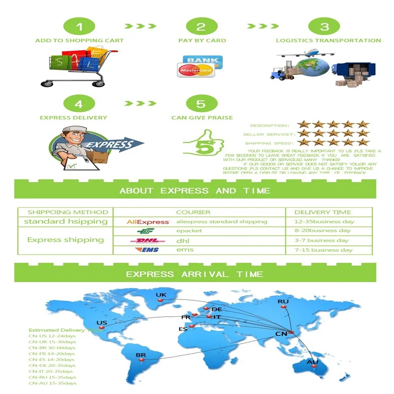 Please contact us before leaving neutral or negative feedback. As a serious and responsible seller, we will try our best to solve your problem. Your comments are very important to the success of our business. If you are satisfied with the purchase and our services, please take a moment to give us a positive feedback with a total detailed sales rating (DSR) of 5.