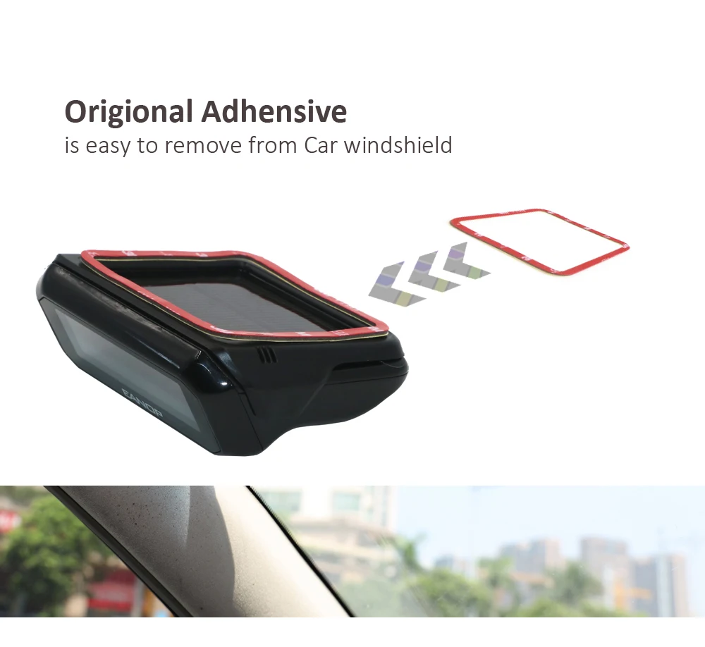 With Holder designing, displayer can take out from holder, for charging or setting. with high quality adhensive, it will not leave any damage even you remove the holder