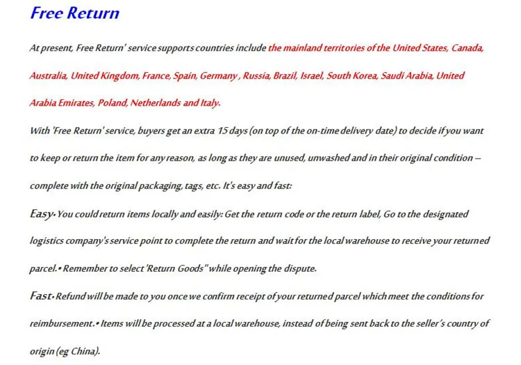 • If you did not receive the product within the guaranteed time( 45 days not including 2-5 day processing) you can request a refund or a reshipment.