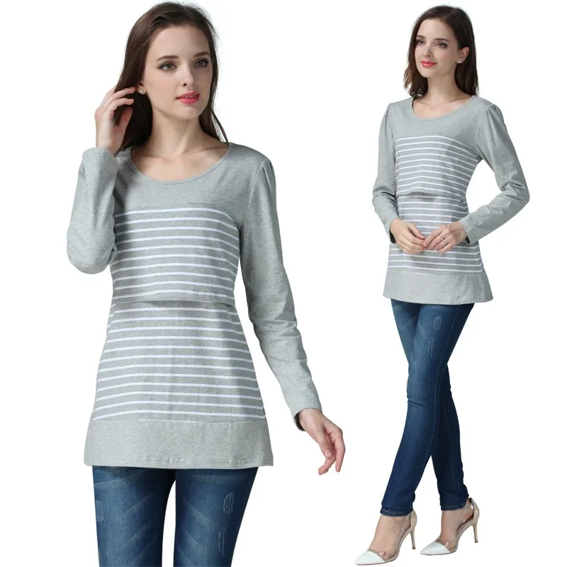 Emotion Moms Long Sleeve Maternity Tops New Casual Feeding T-shirt Breastfeeding Clothes For Pregnant Women Nursing top