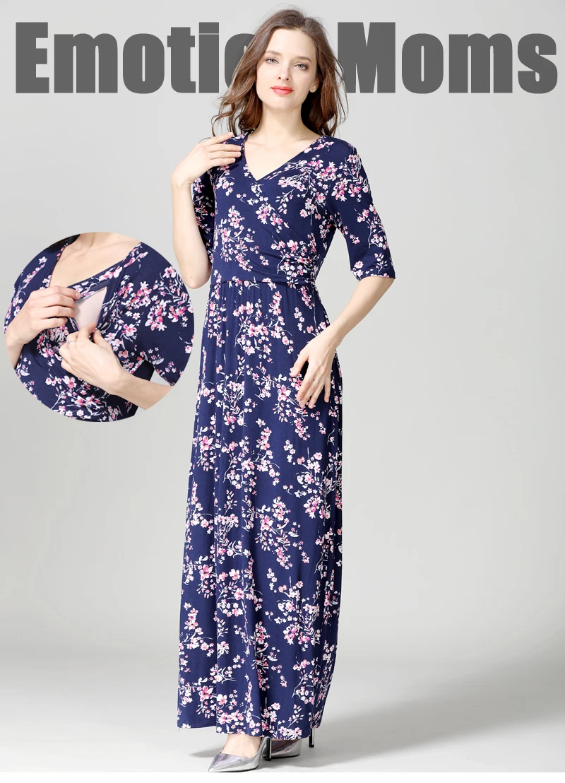 Emotion Moms Maternity Clothing Nursing Dress Party Floral Dress Pregnancy Long Breastfeeding Dresses for Pregnant Women