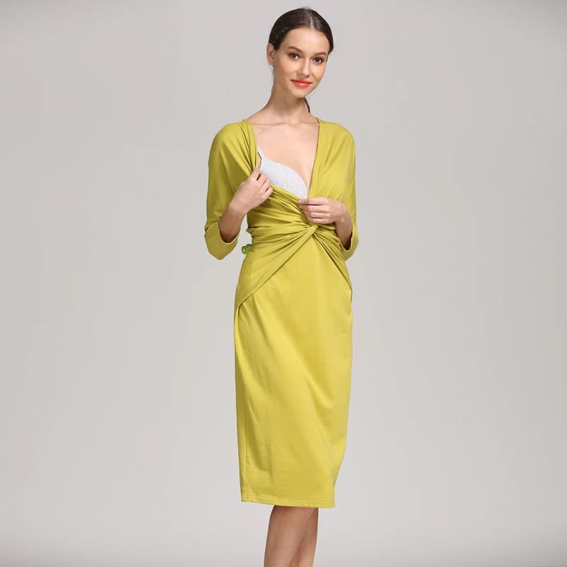 1).Emotion Moms Pregnant Clothing 3/4 Sleeve Stretch Cotton Maternity Breastfeeding Nursing Dresses Women Pregnancy Clothes Spring
