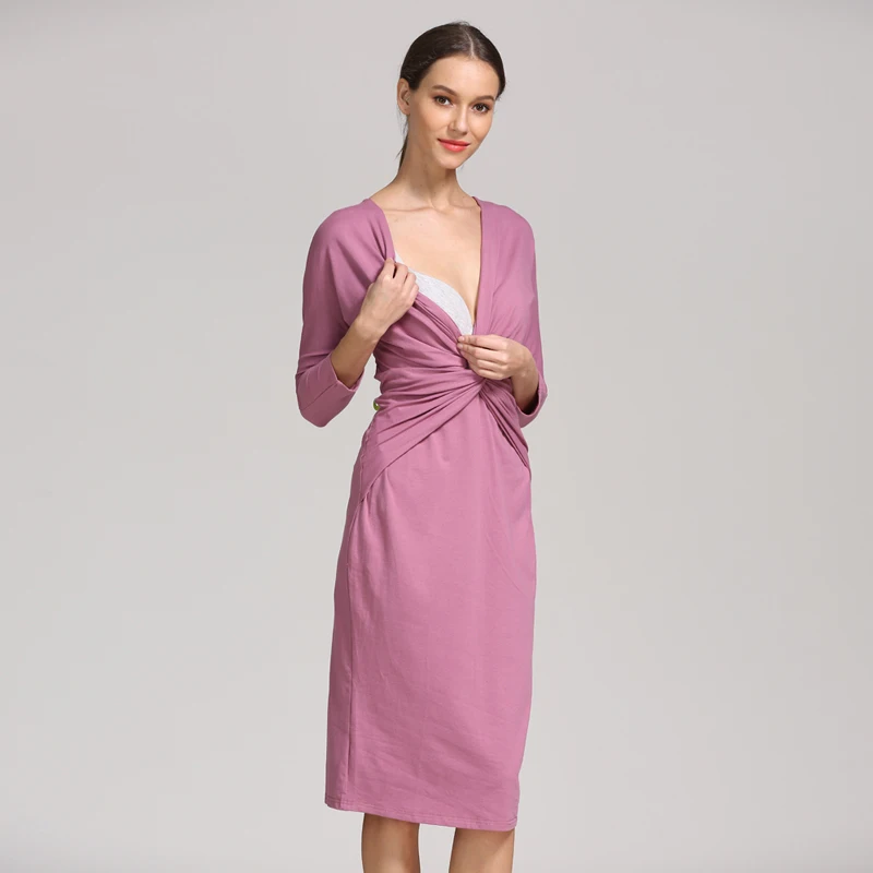 1).Emotion Moms Pregnant Clothing 3/4 Sleeve Stretch Cotton Maternity Breastfeeding Nursing Dresses Women Pregnancy Clothes Spring