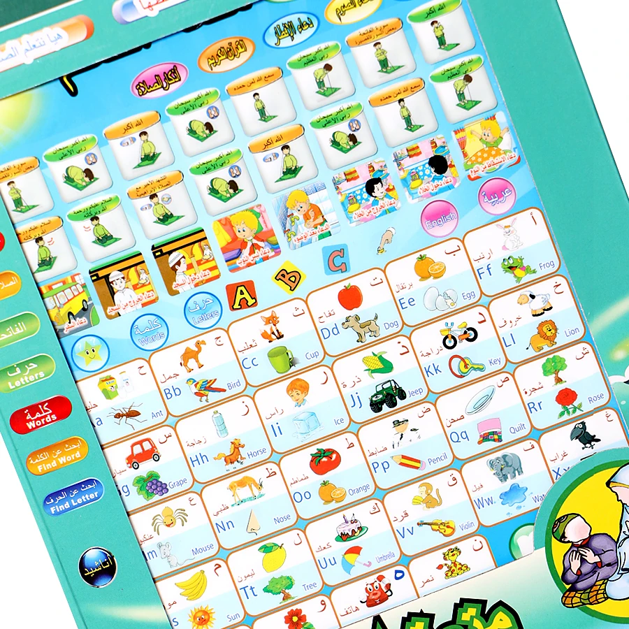 English and Arabic language bilingual learning pad toy with Muslim Daily Duaas and ABC letters,words simple learning for kid toy