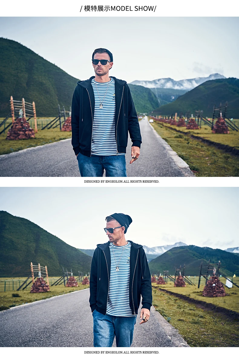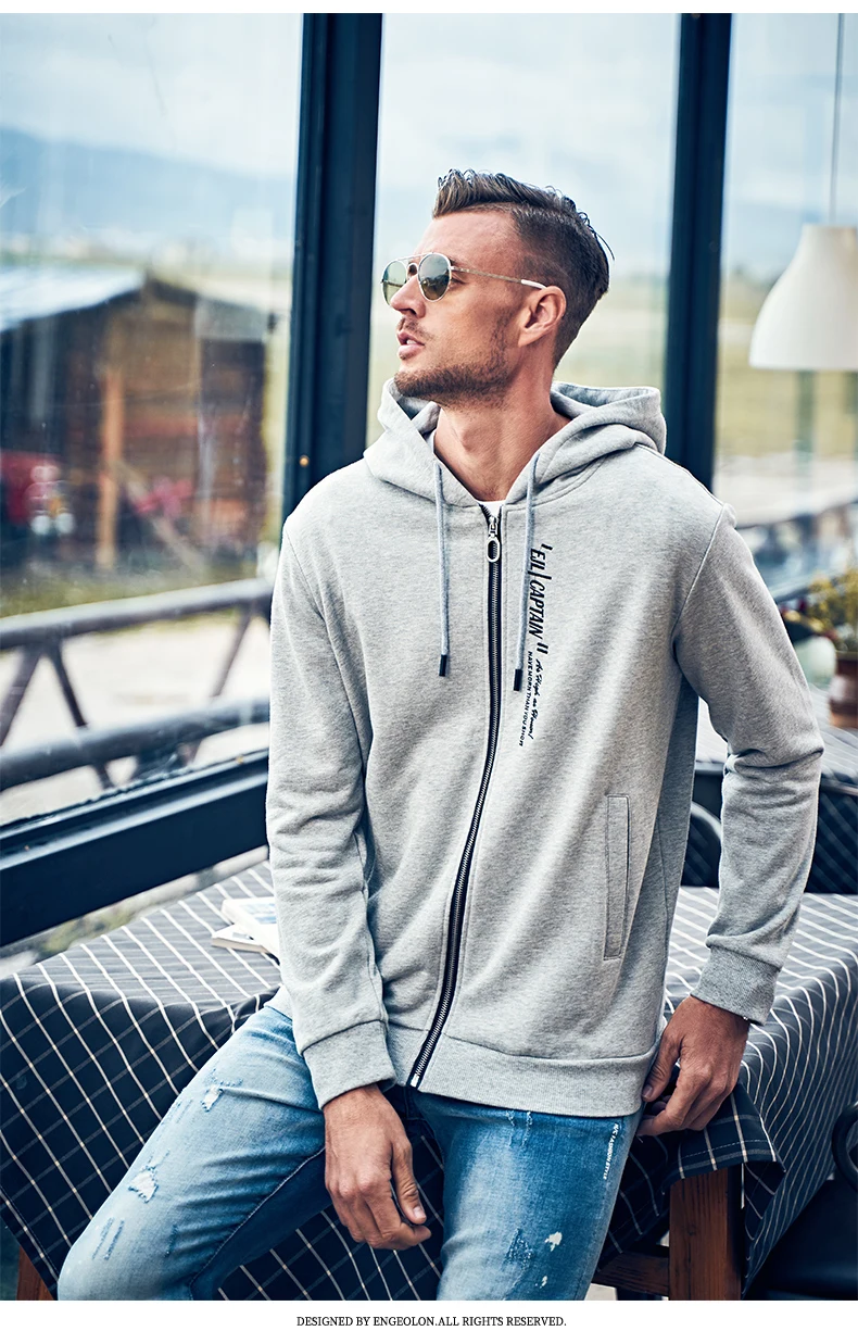 Enjeolon Brand Hoodies Men Hooded Casual 100% Cotton Winter Coat Male Sweatshirts Coat Zipper Hooded Jackets
