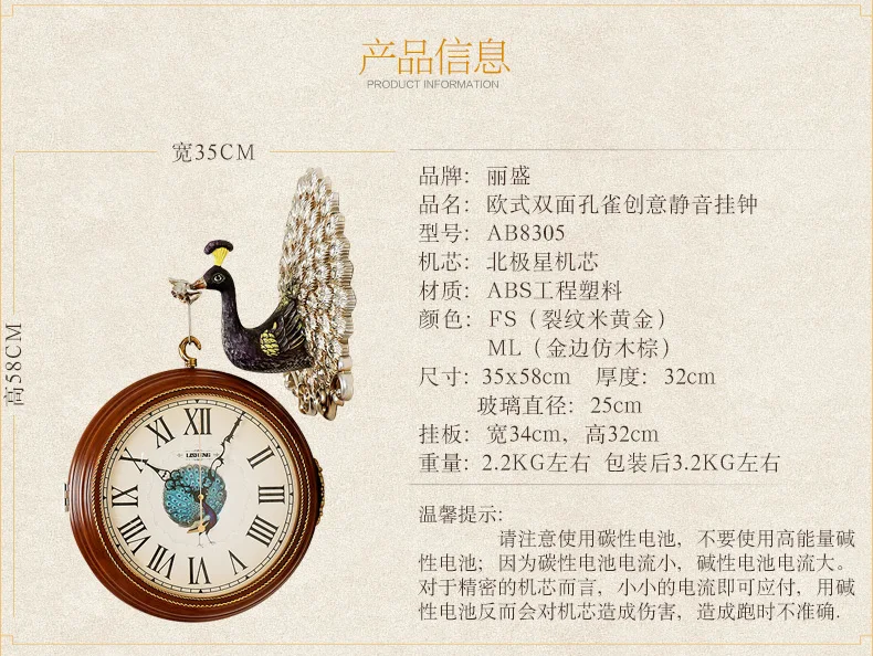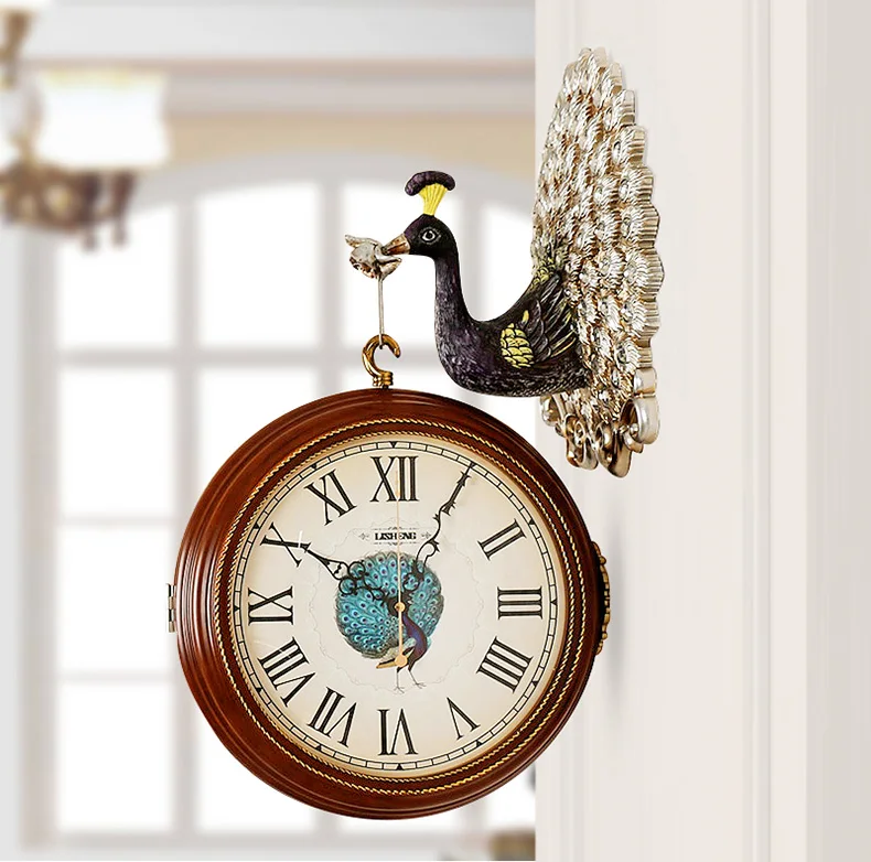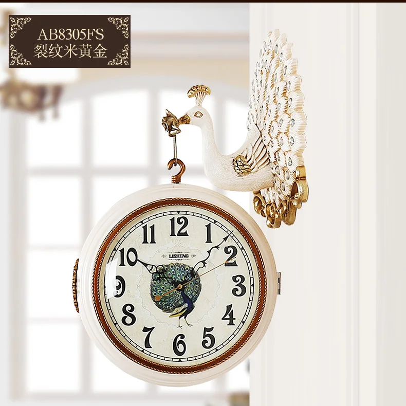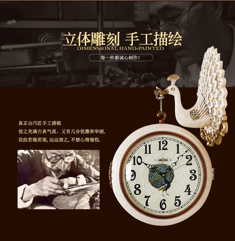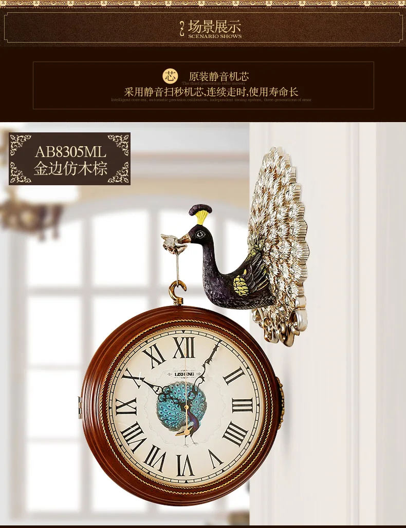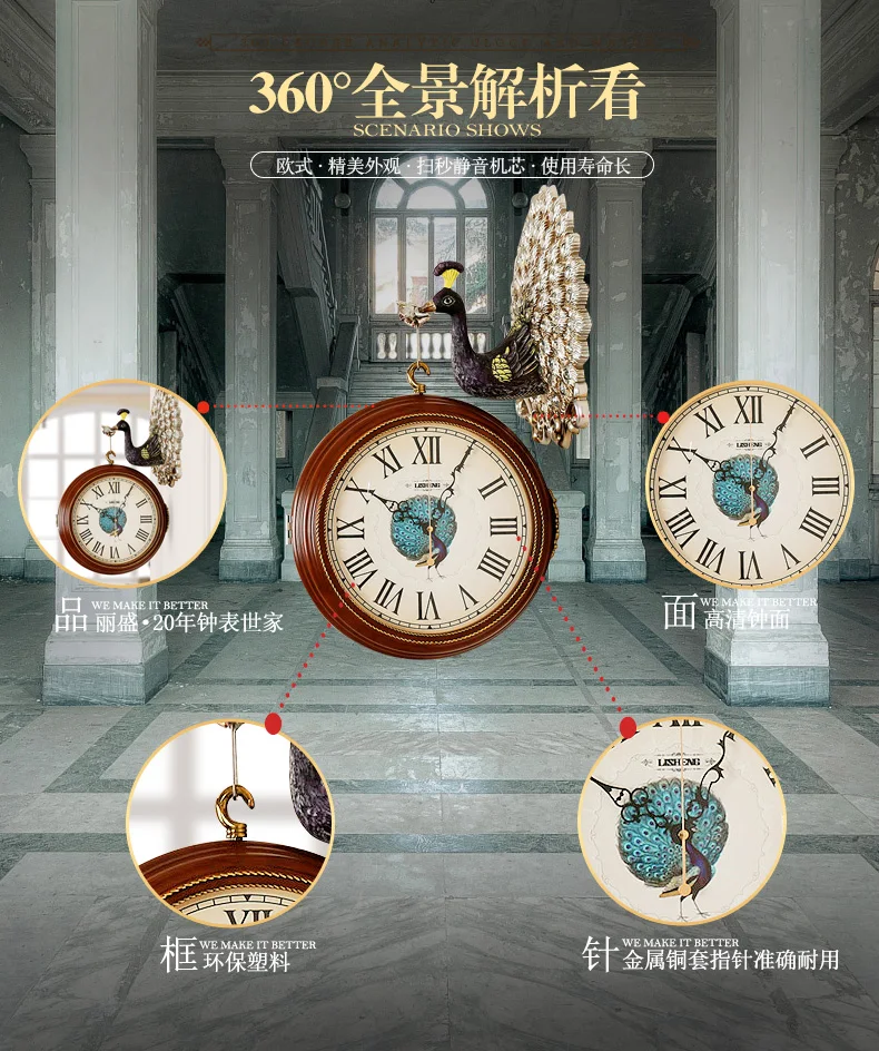 European Peacock Double-sided Wall Clock Living Room Clocks Creative Personality Modern Art Decoration Mute Wall Clocks