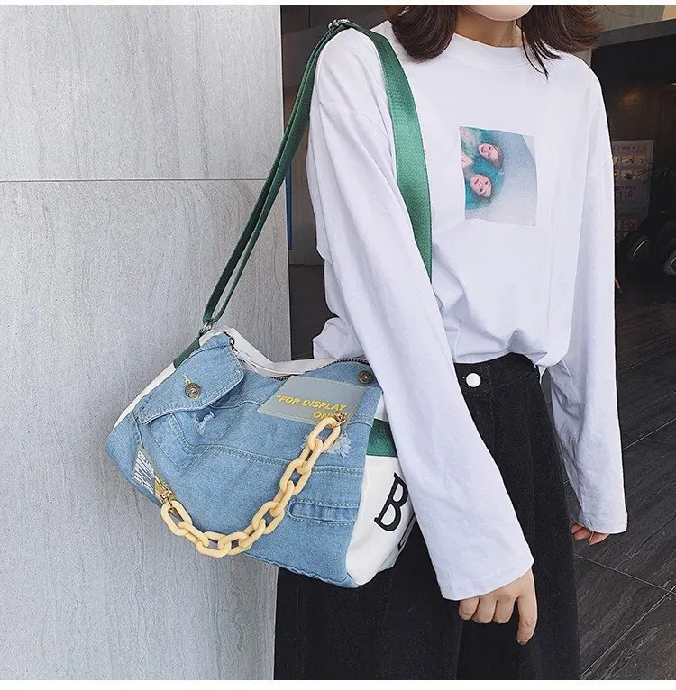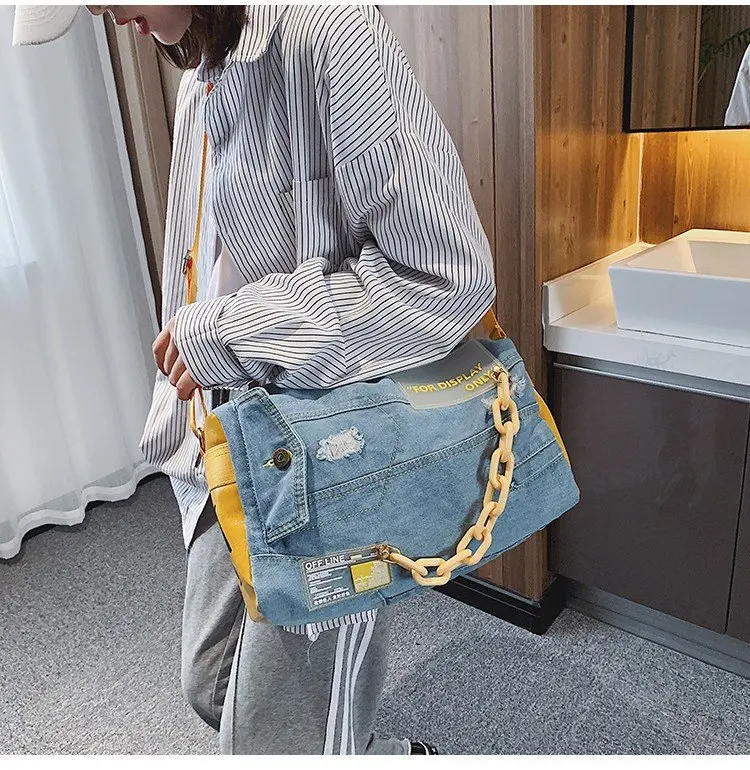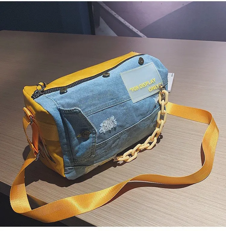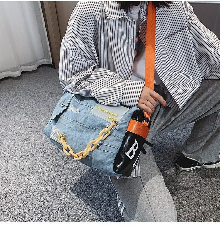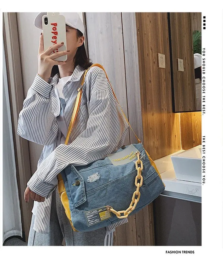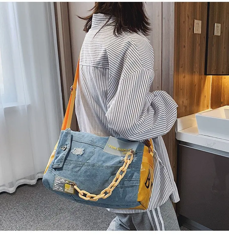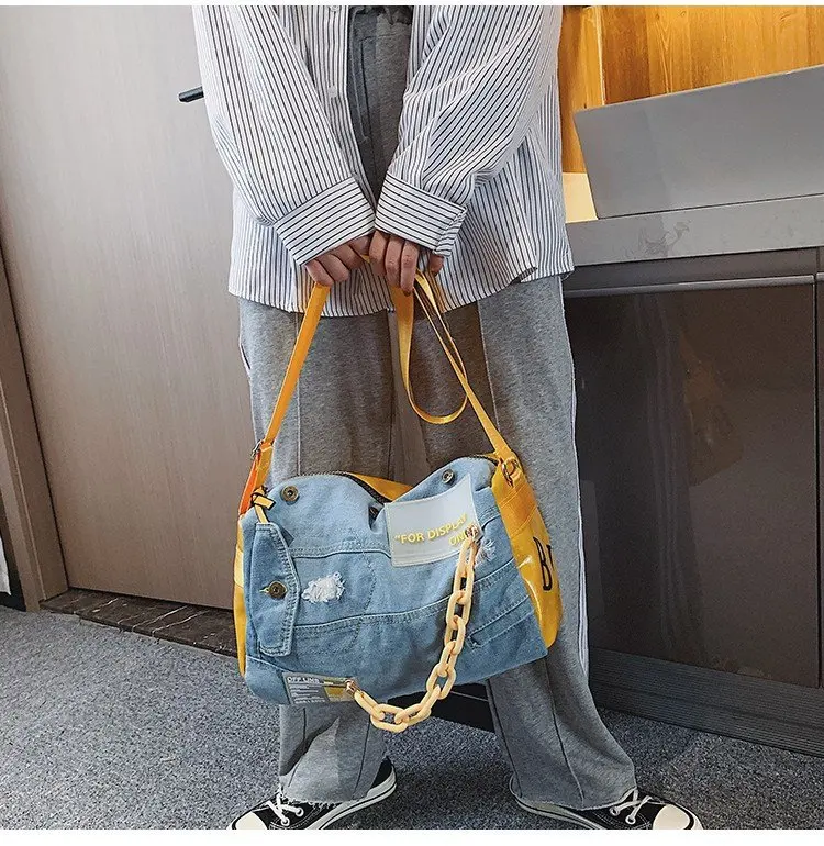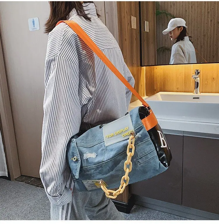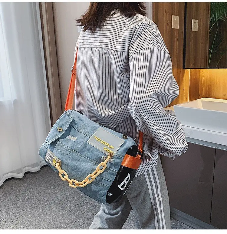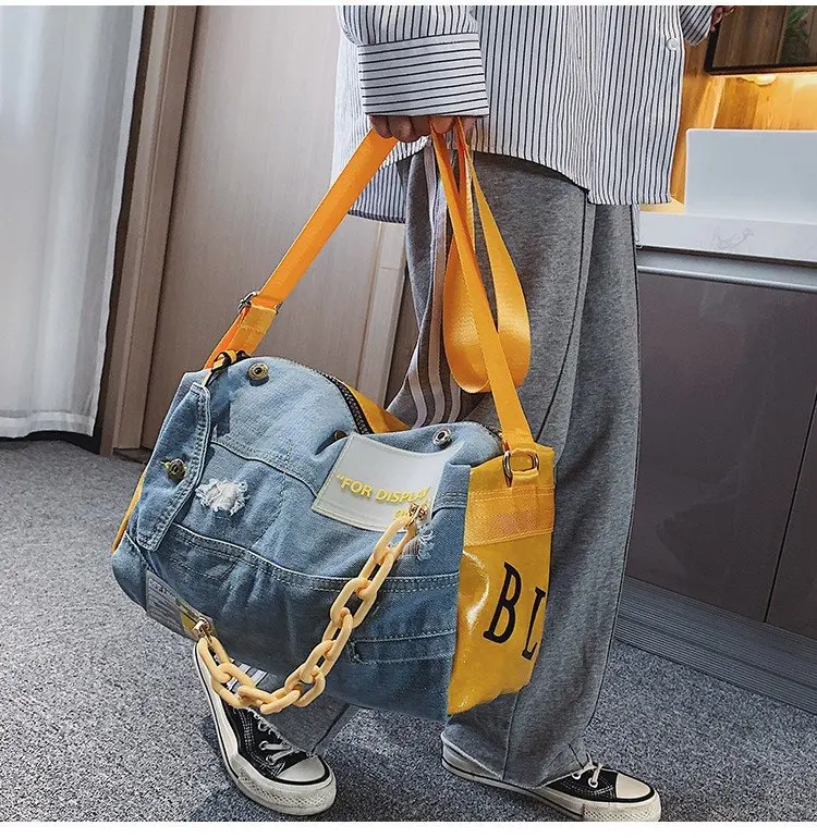 Fashion Oxford Travel Bag Women/men Hand Luggage Bags Case Big Travel Duffle Weekend Bag Male/female Denim Patchwork Gym Bags