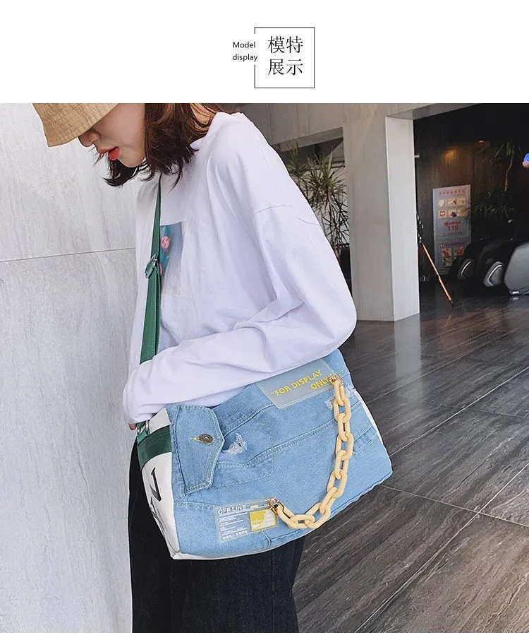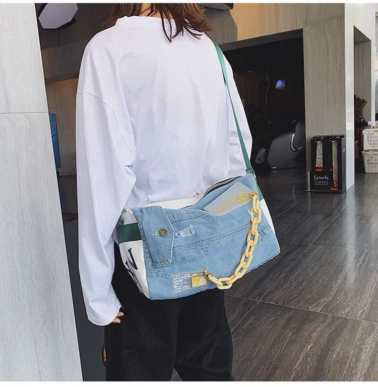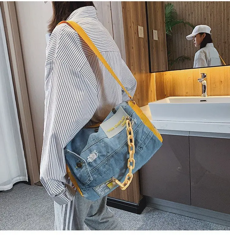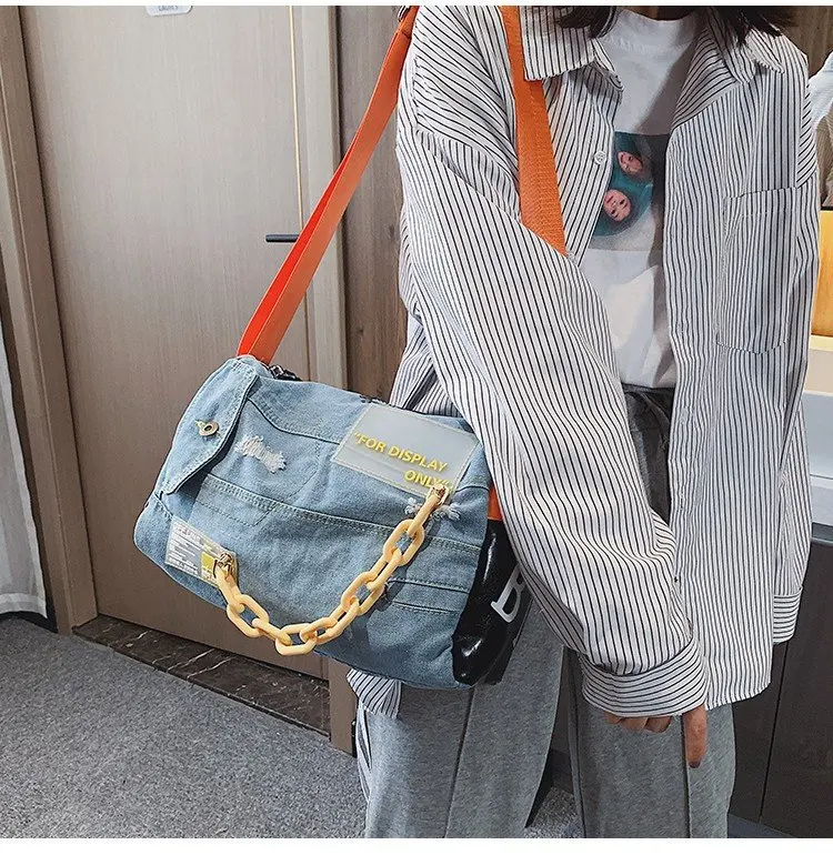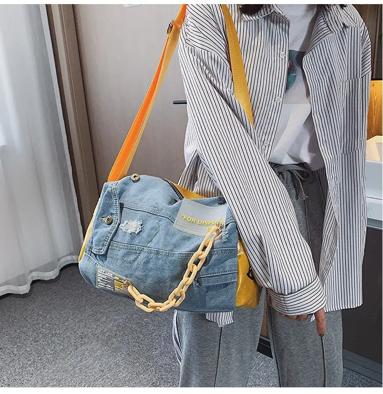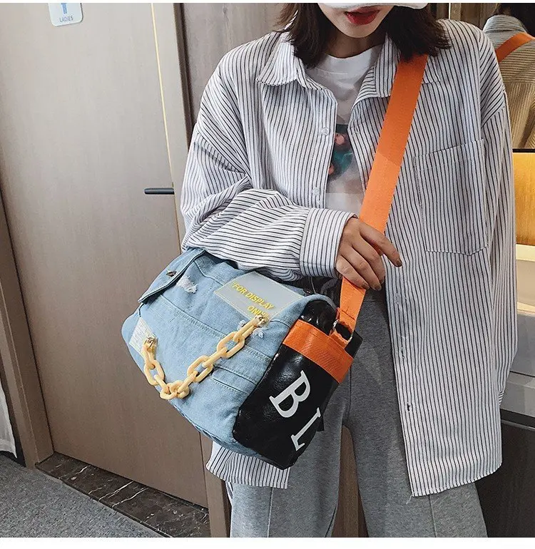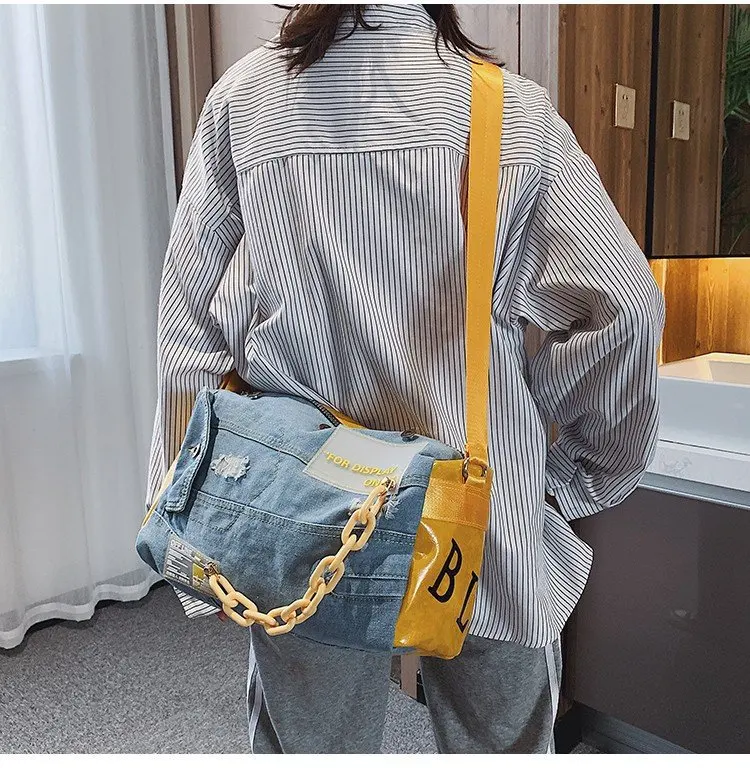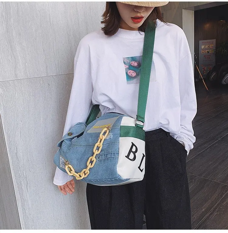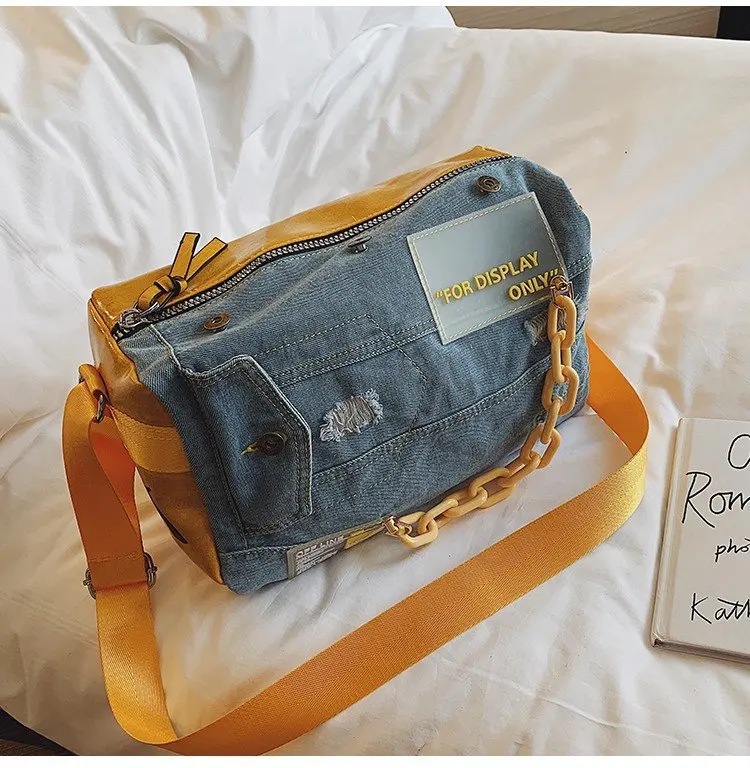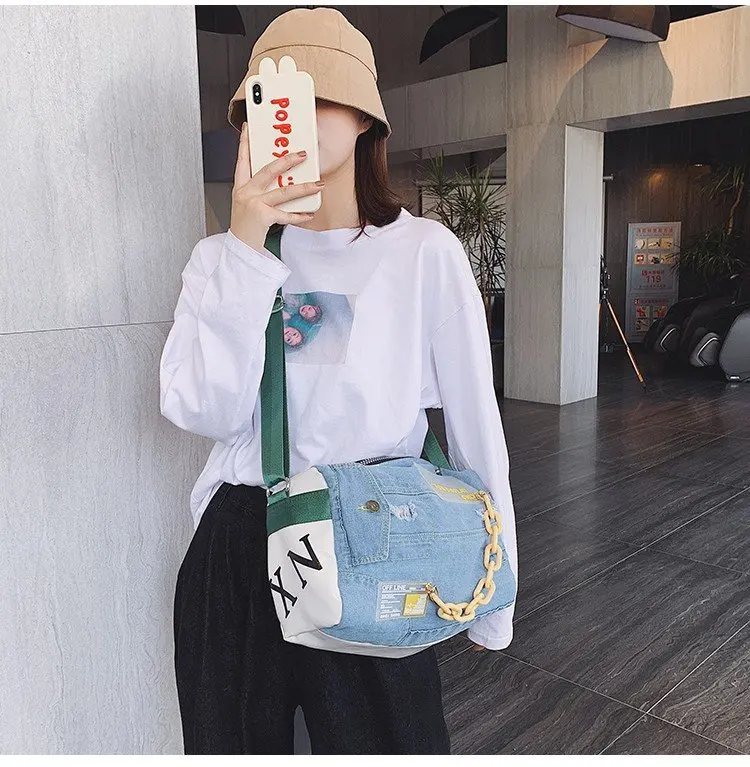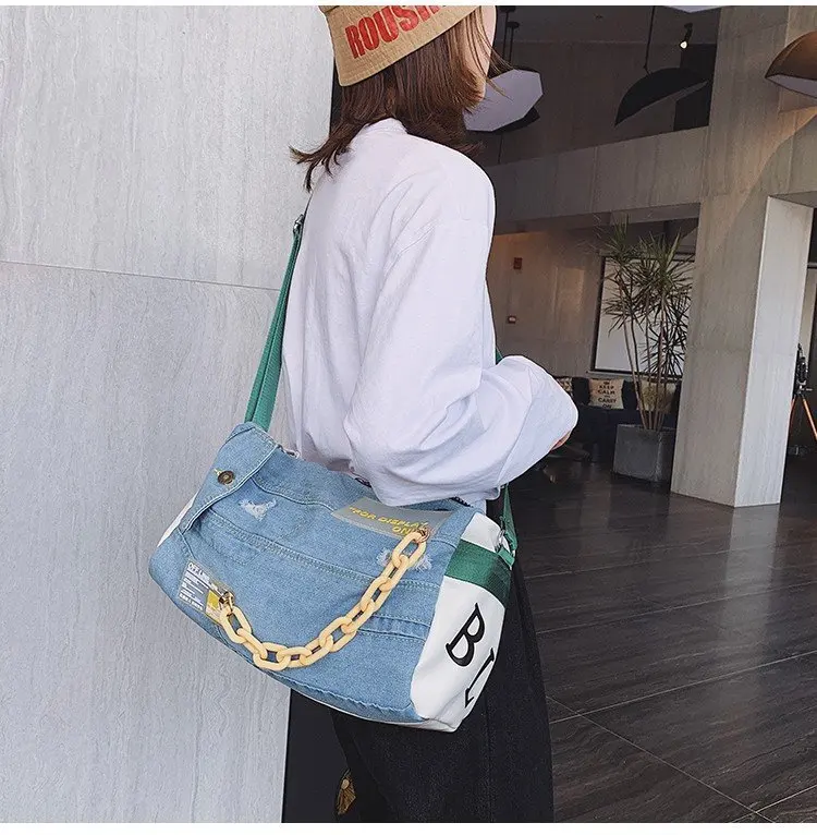 Fashion Oxford Travel Bag Women/men Hand Luggage Bags Case Big Travel Duffle Weekend Bag Male/female Denim Patchwork Gym Bags