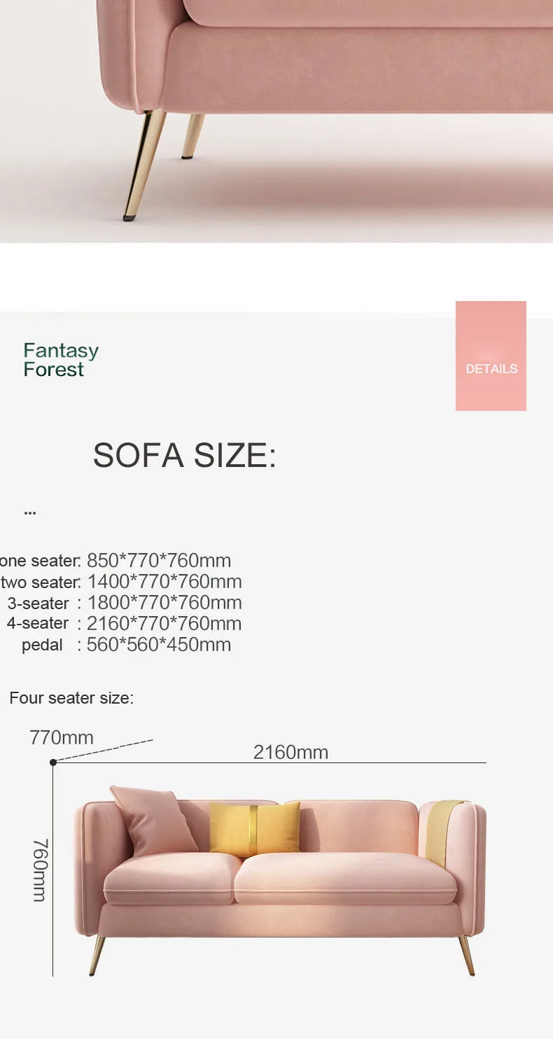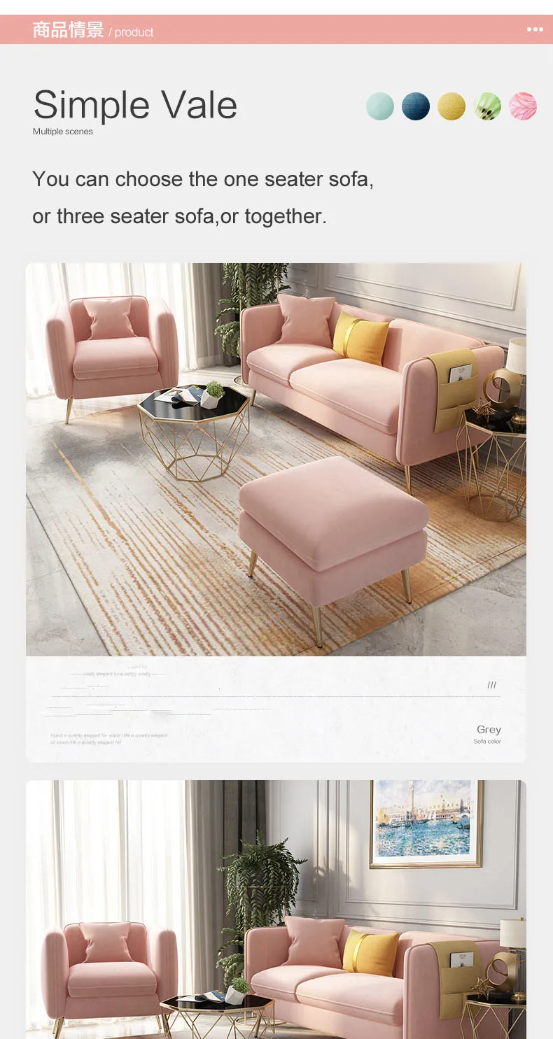 Fashion sofa pink sofa high quality living room furniture living room sofa comfortable set fabric sofa
