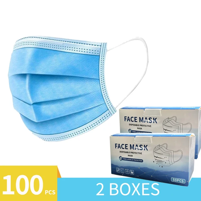 Fast delivery 3-layer mask 100 50pcs Face Mouth Masks Non Woven Disposable Protective Meltblown cloth Masks Earloops Masks