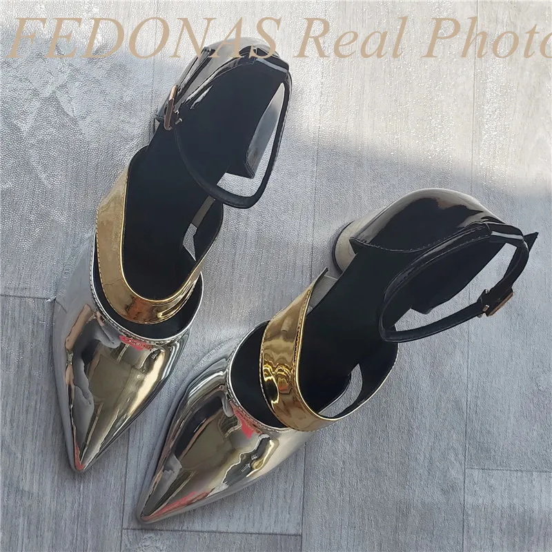 FEDONAS Fashion Patent Leather Women Pumps Summer Sandals Pointed Toe High Heels Night Club Shoes Woman Party Shoes