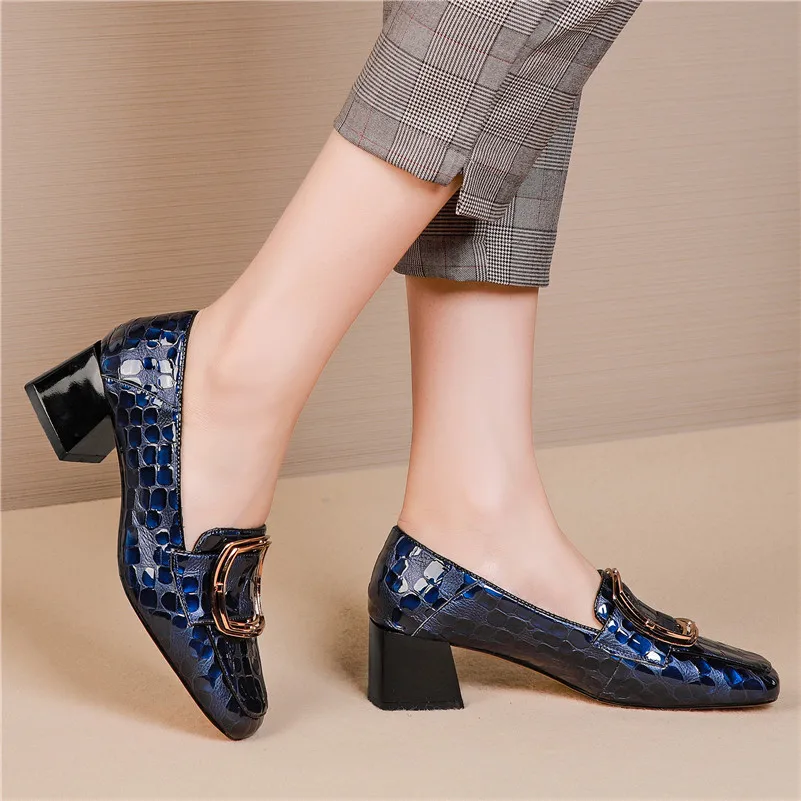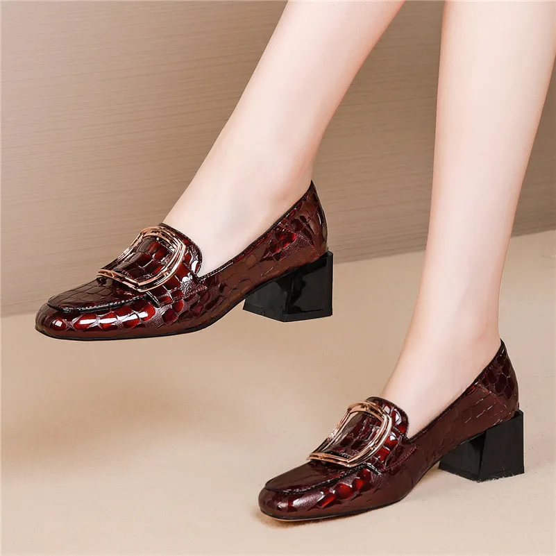 FEDONAS Female Genuine Leather Retro Party Shoes Woman Spring Autumn Slip-on Shallow Shoes Women New Square Toe High Heels Pumps