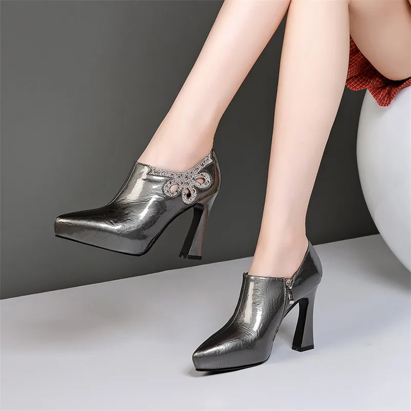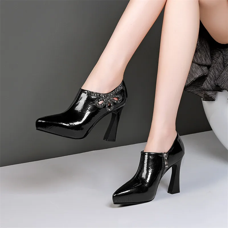 FEDONAS Rhinestone Fashion Women Pumps Spring Summer Prom High Heeled Shoes Woman Genuine Leather Pointed Toe Sexy Female Pumps