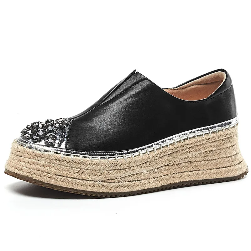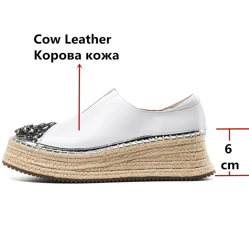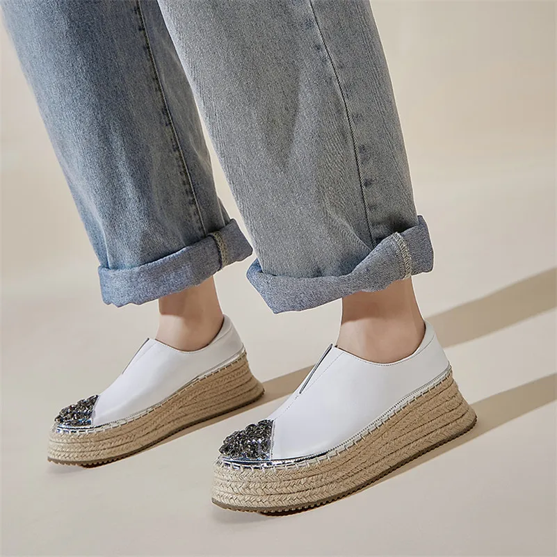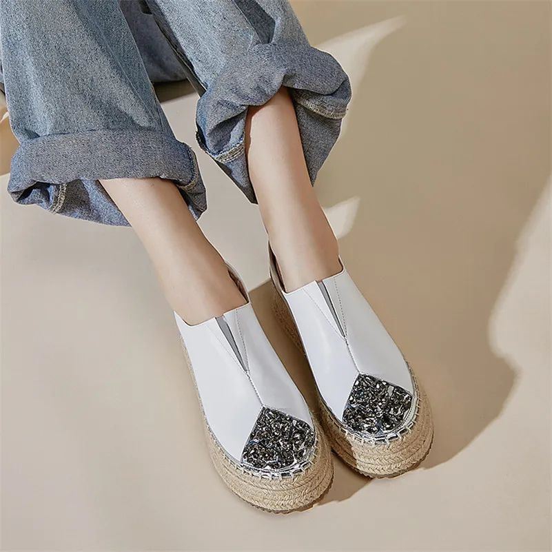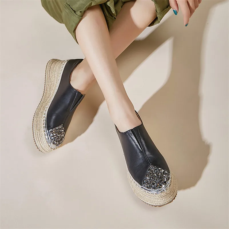 FEDONAS Spring Quality Genuine Leather Platform Women Flats Slip On Sports Casual Shoes Woman Blingbling Crystal Women Sneakers