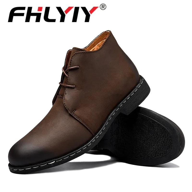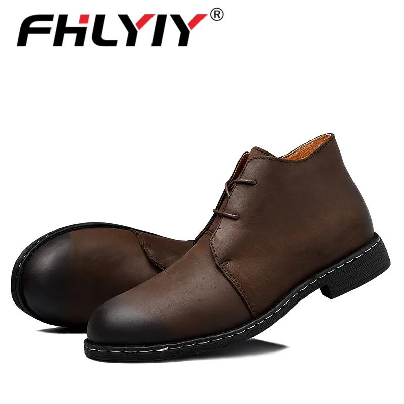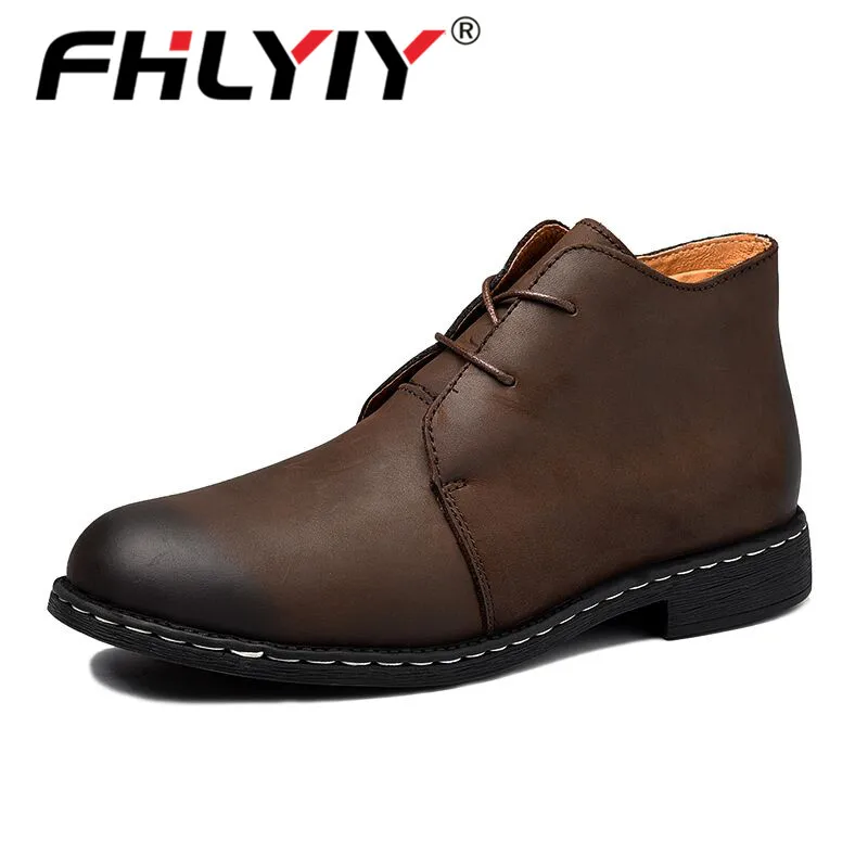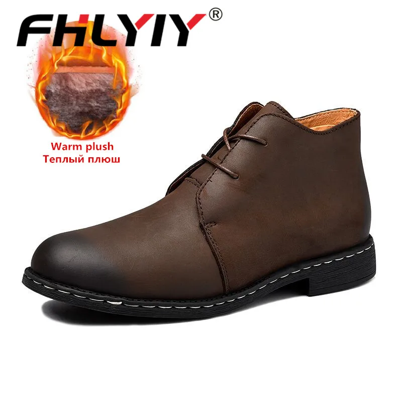 Fhlyiy Brand New Winter Warm Fur Men Boots Big Size 38-47 Vintage Motorcycle Boots Men Shoes Genuine Leather Snow/Ankle Boots
