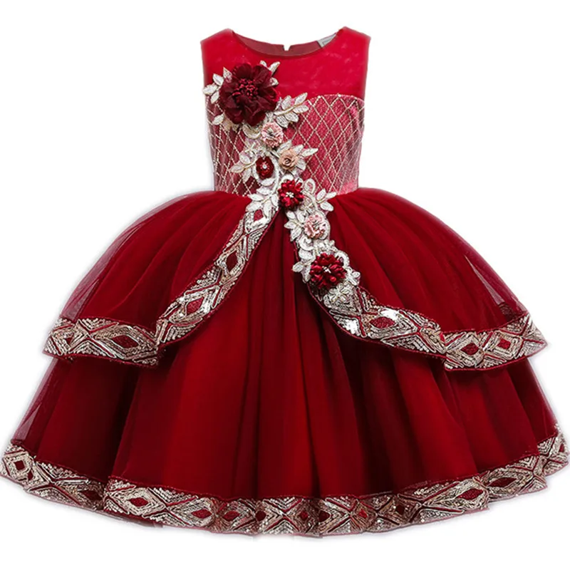 Flower Girls Dress New Year Princess Party Dress Elegant Wedding Gown Kids Dresses for Girls Birthday Party Dress Vestido