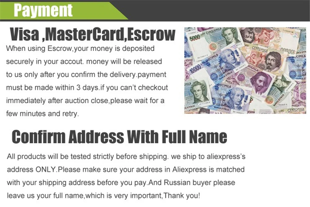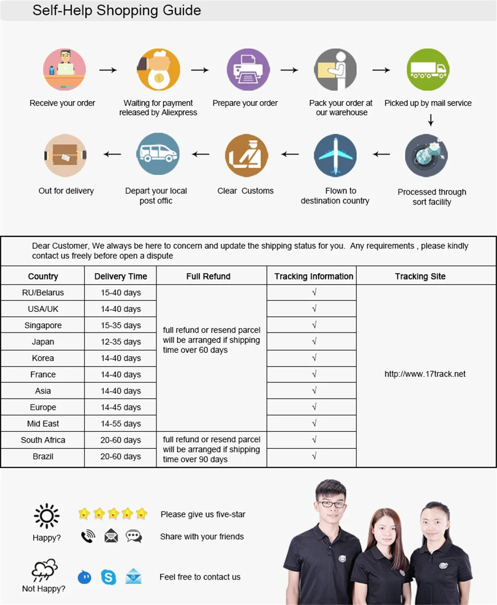 1.Shipment will be arranged within 1 to 3 working days after receiving verified payment.(We will check the product before the package is sent and give the package a safe package. Make sure the package you receive is perfect.)