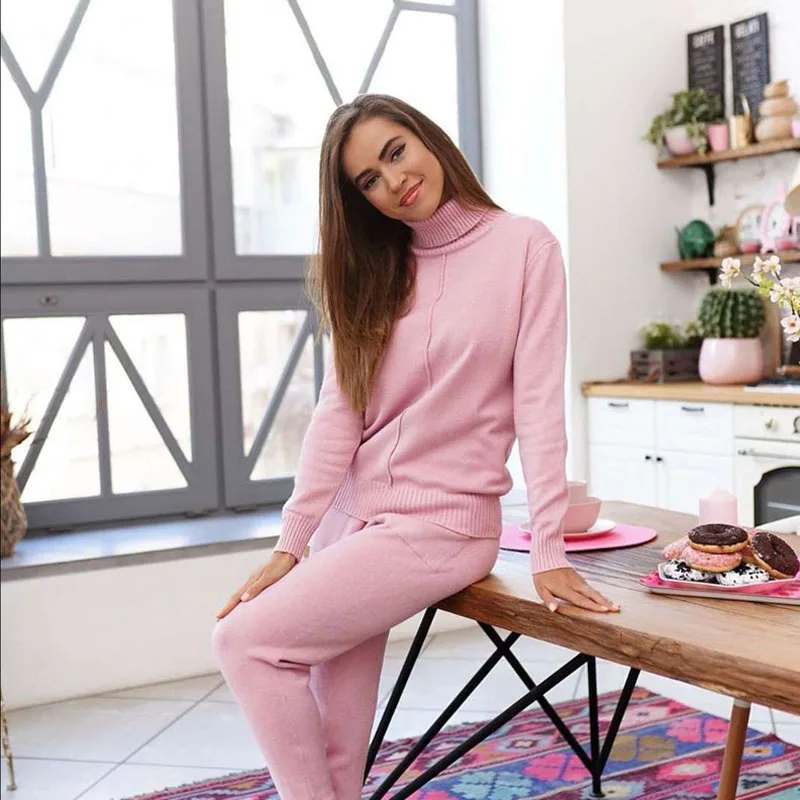 FORERUN Women Two Piece Sweater Outfit Turtleneck Sweater Knitted Pullover and Knitted Pants 2 Piece Autumn Suits and Set