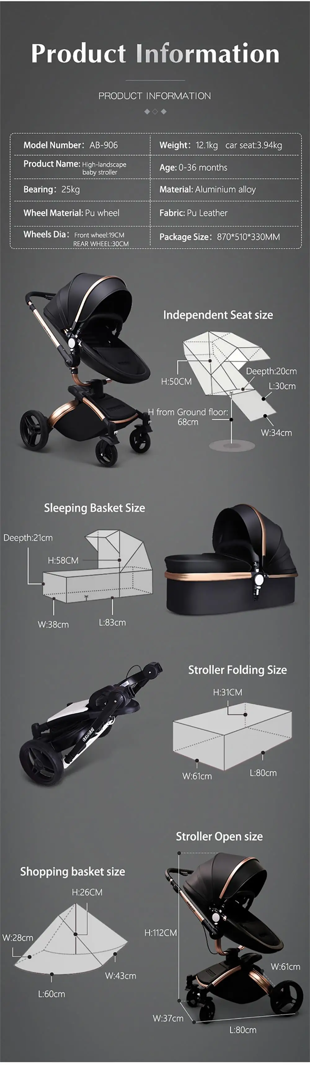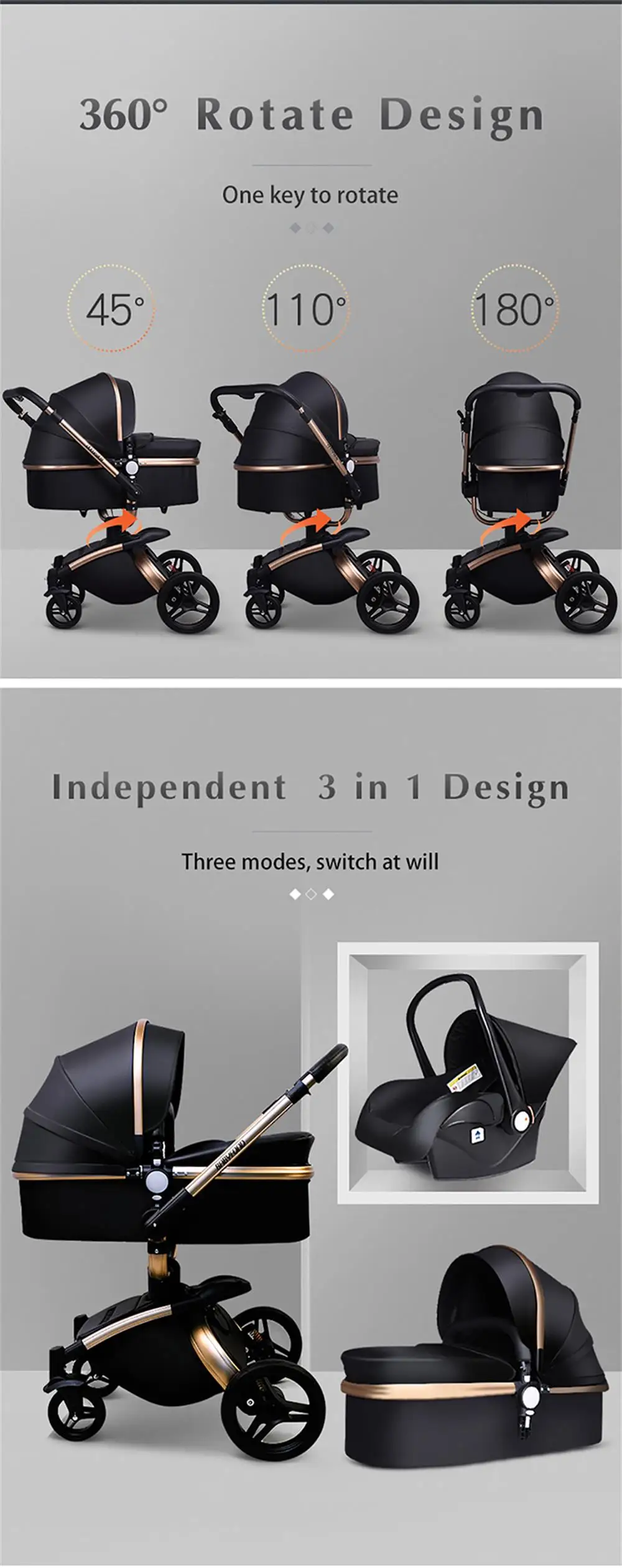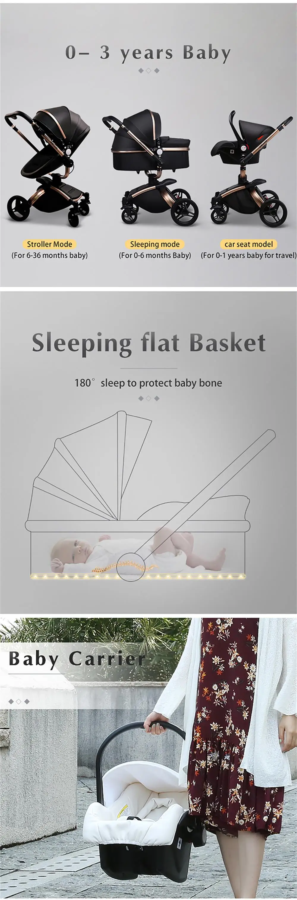 3 in 1 = Baby stroller+ baby bassinet+ baby car seat + free gifts