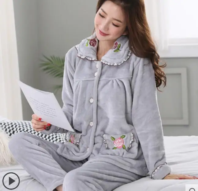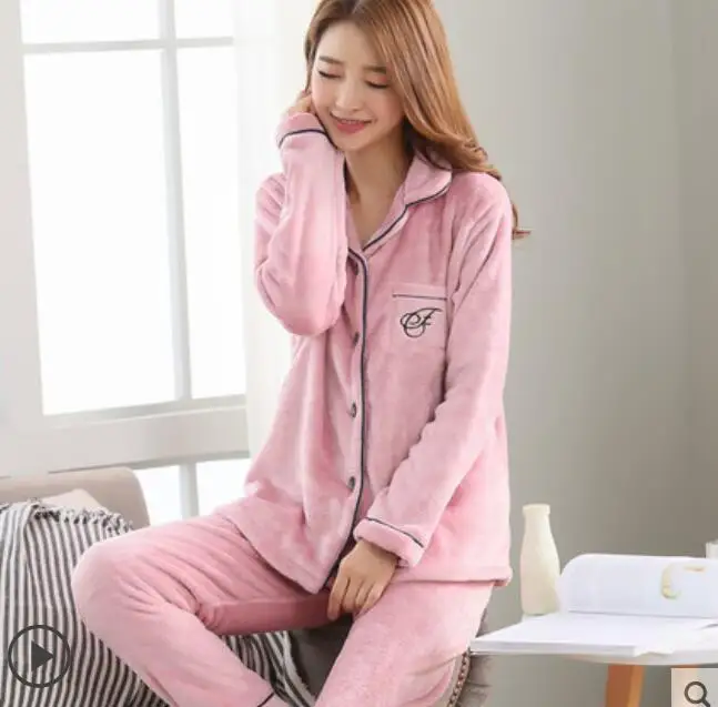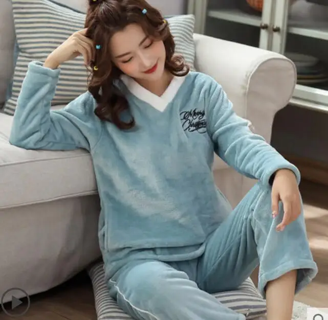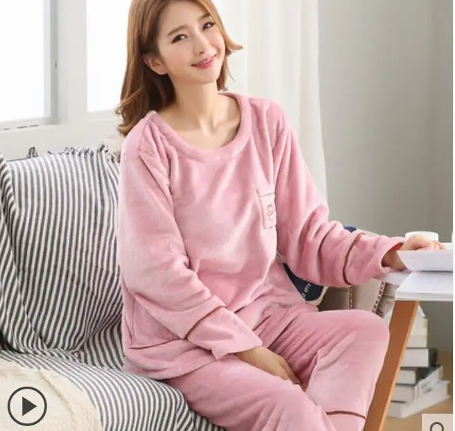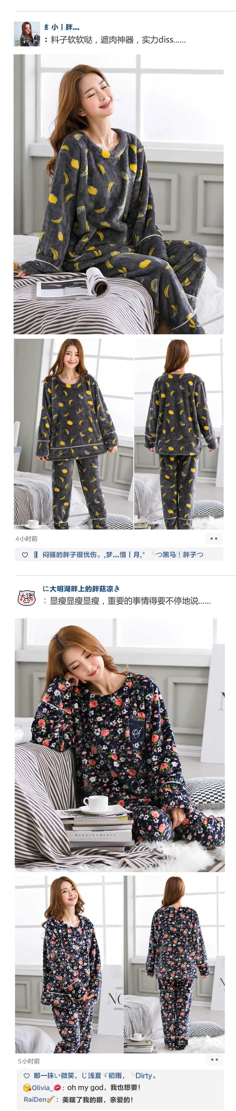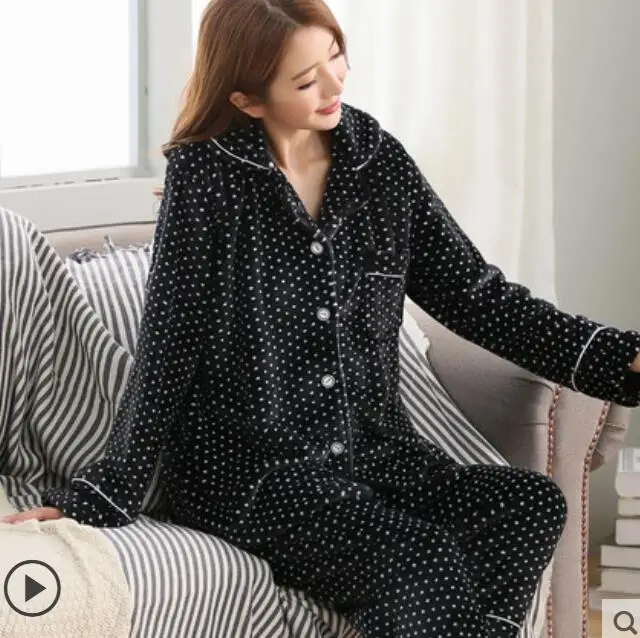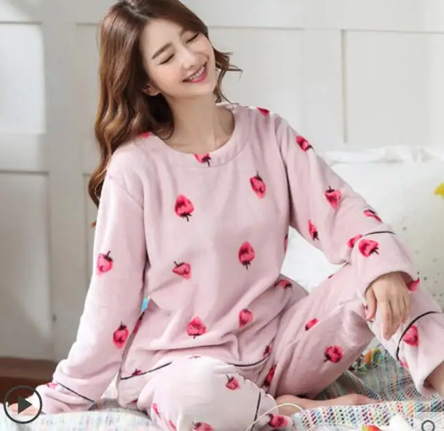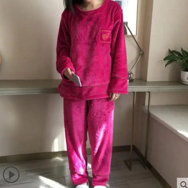 korean winter Women Pyjamas Thicken Flannel Pajama Sets Print Thick Warm Love Pijama mujer Girl Nightgown Long Pant Sleepwear