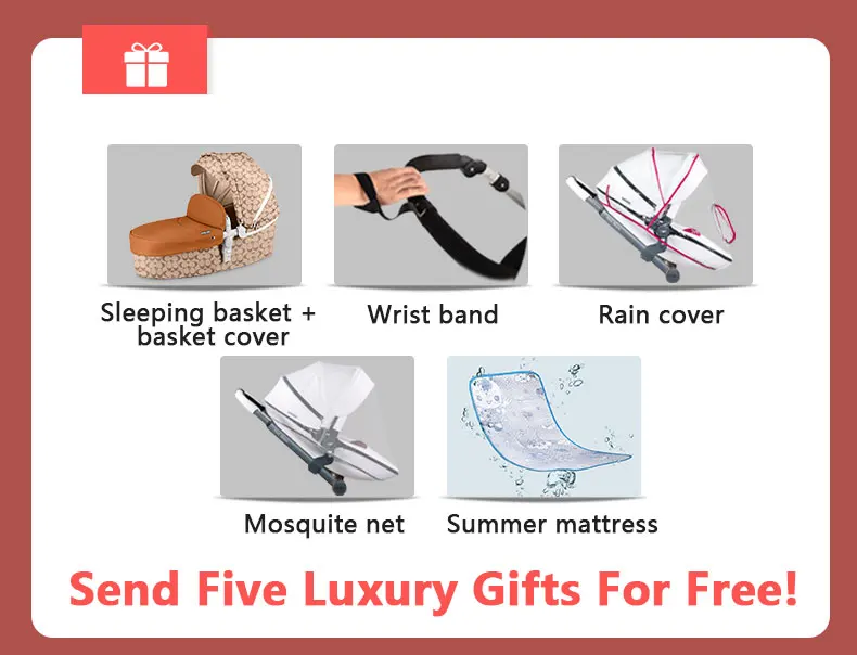 Buy stroller now send five big gifts: sleeping basket +basket cover, wrist band, rain cover, mosquito net , summer mattress