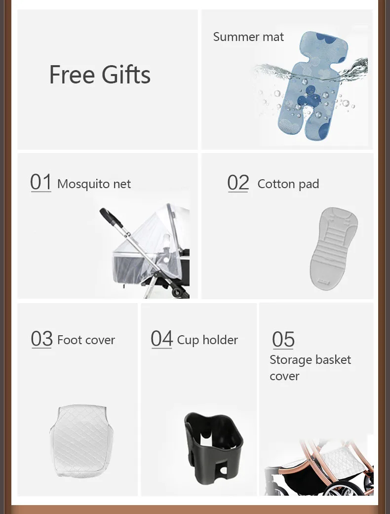 Buy stroller , send 6pcs gift: summer mat, mosquito net, cotton pad, foot cover, cup holder, storage basket cover