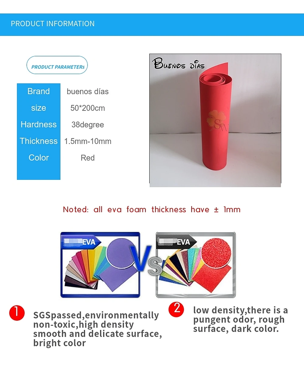 Free shippment no hole red color 5mm thickness Eva foam sheet,cosplay children school handmade material Size 50cm*200cm