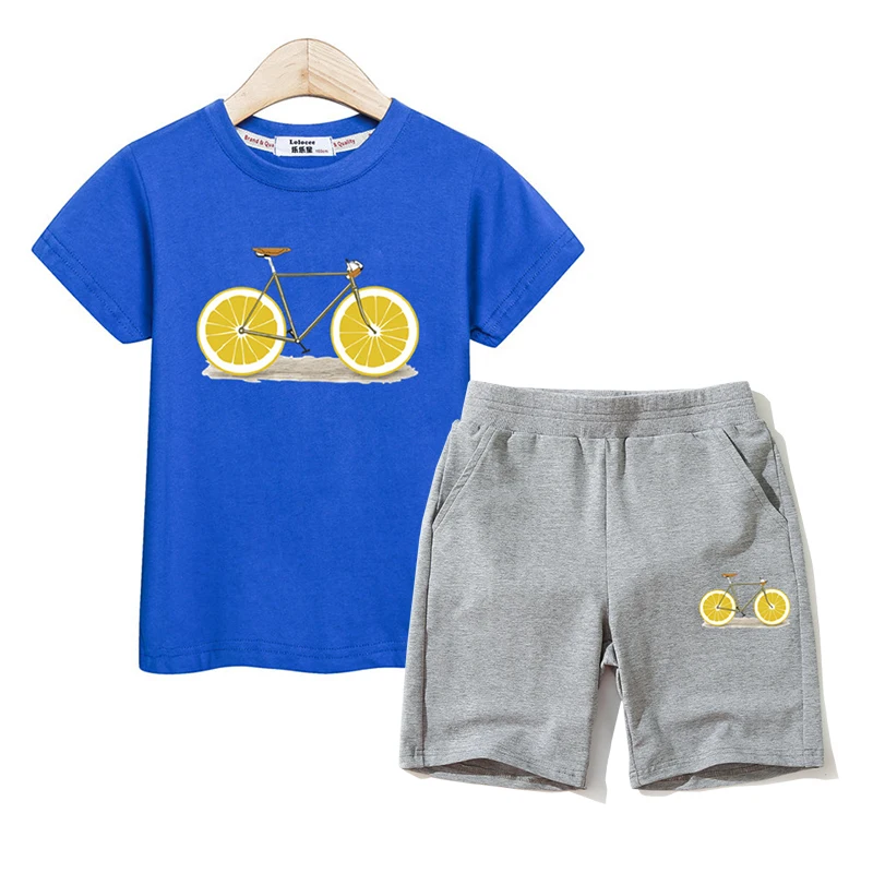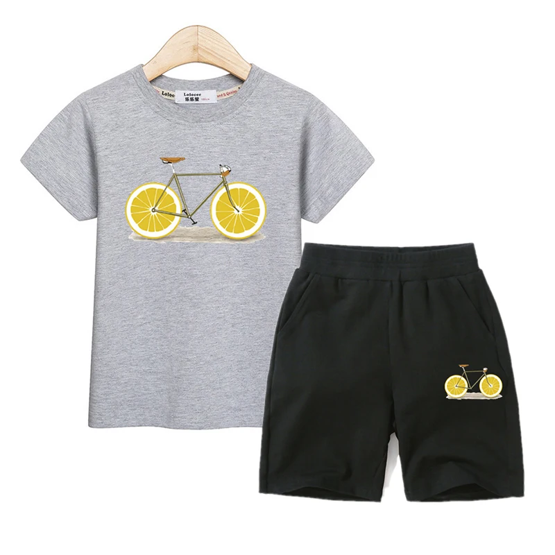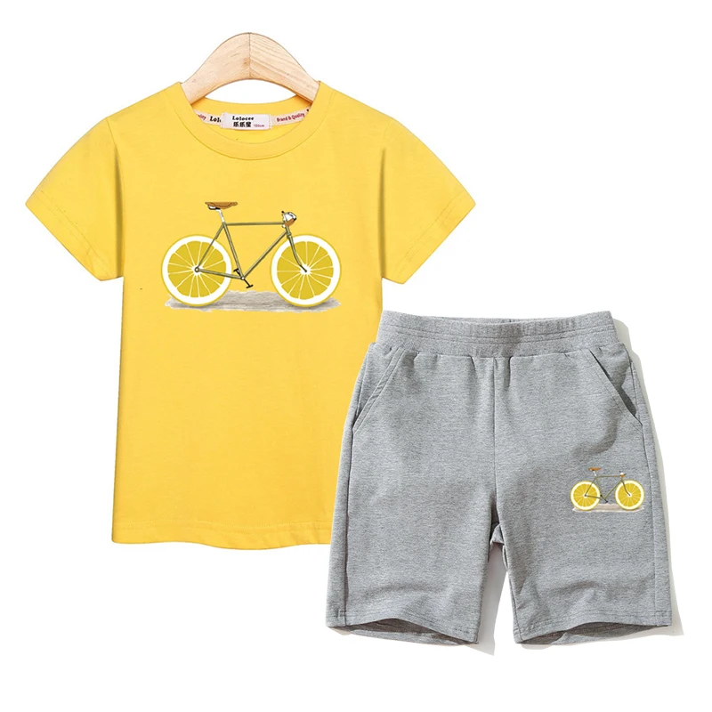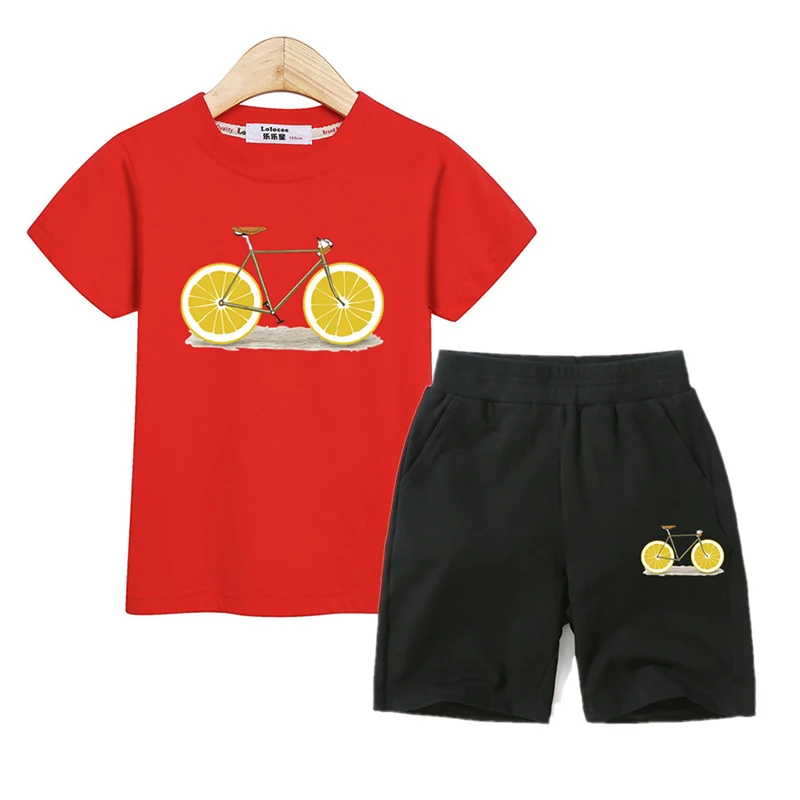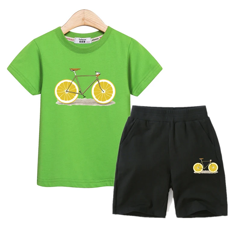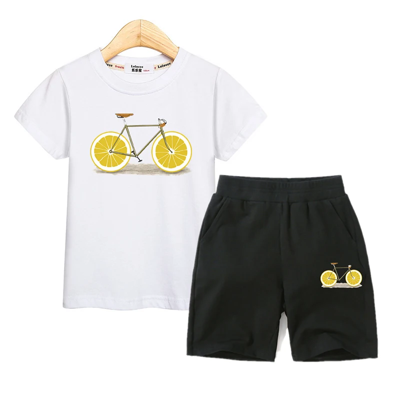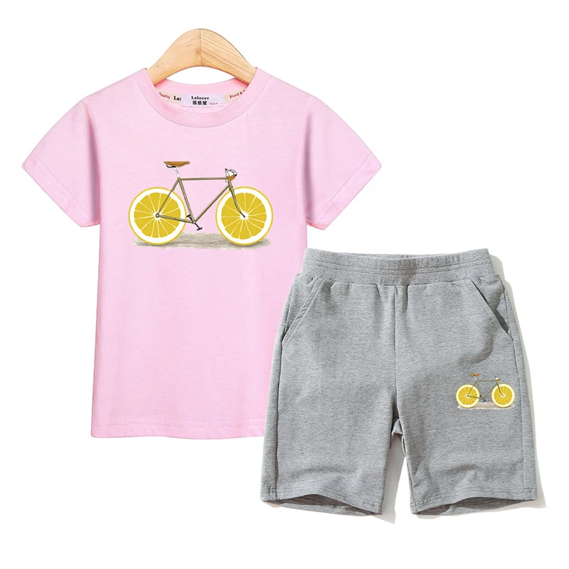 Fruit Bike Kids Summer Clothing Boys Girls Short Sleeve T-shirt Pants Set 100% Cotton Suit Kids Outfit Funny Design Costumes