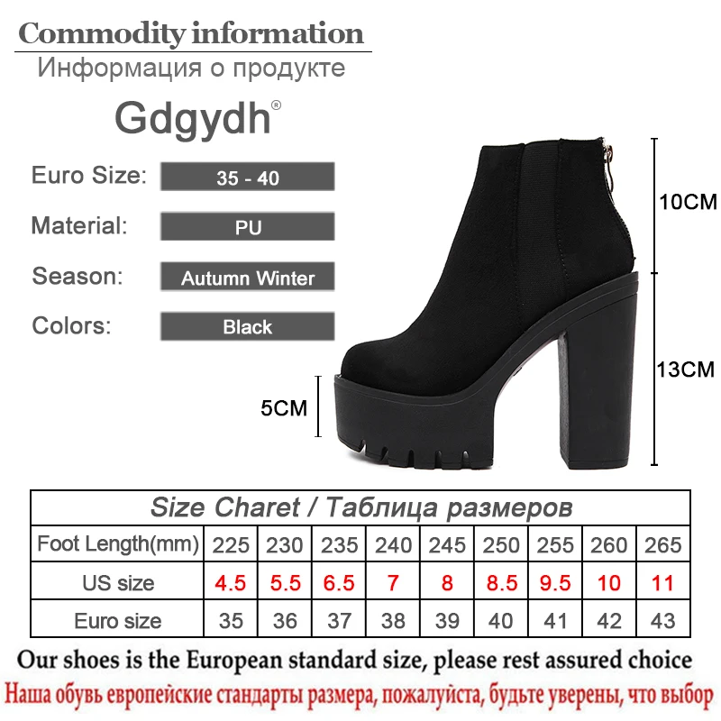 Gdgydh Fashion Black Ankle Boots For Women Thick Heels Spring Autumn Flock Platform Shoes High Heels Black Zipper Ladies Boots