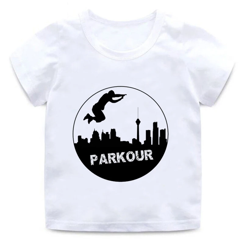 Children Cartoon Irons Parkour T-shirt Boys Girls Funny Parkour T-Shirt Kids Casual Kawaii Tops Round Neck Cotton Comfort TShirt USD 4.64 / piece /lot 1