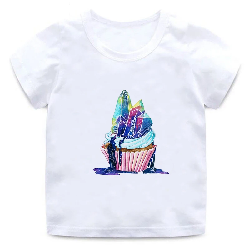 Children’s t-shirt European and American fashion Harajuku crystal cup cake printing short-sleeved round neck boy girl t-shirt USD 4.64 / bag /lot 1