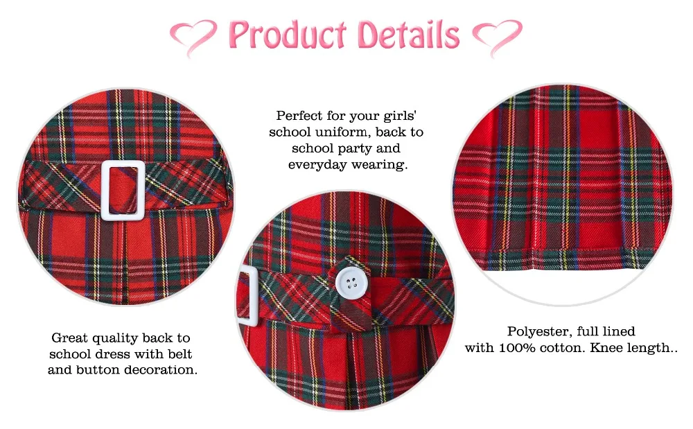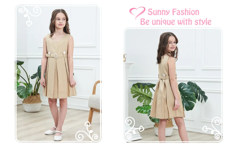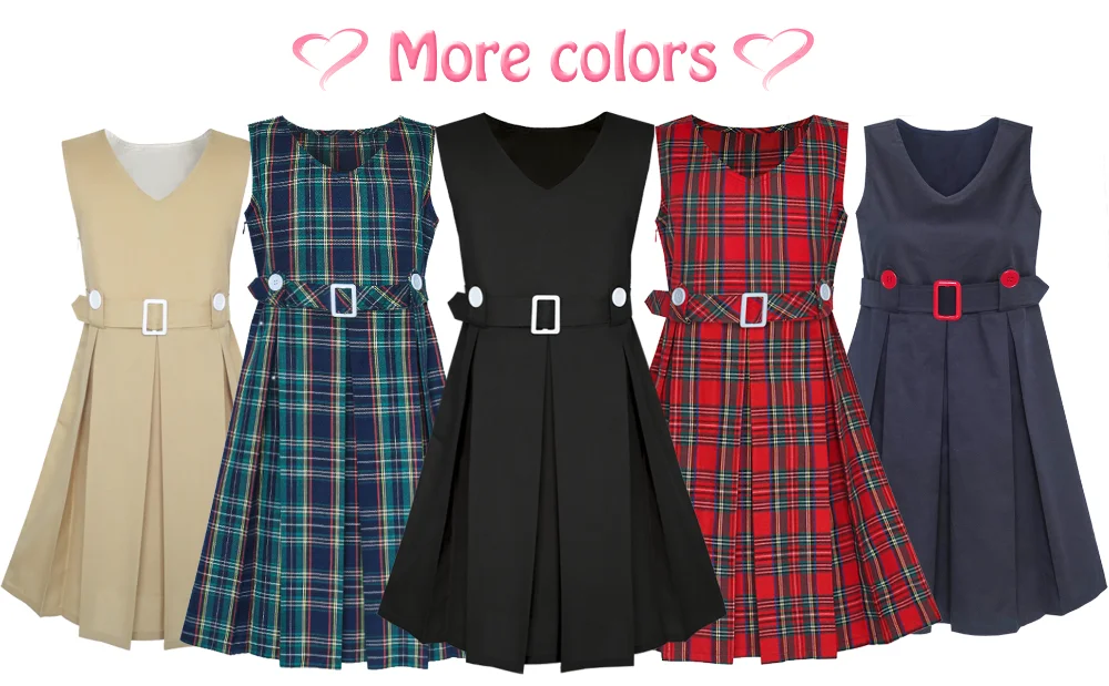 Great quality back to school dress with belt and button decoration. Perfect for your little girls’ and big girls’ school uniform,back to school party and everyday wearing. Following size means age ranges for girls, they are for general guidance only. For most accurate fit, we recommend checking detailed measurement before purchase.