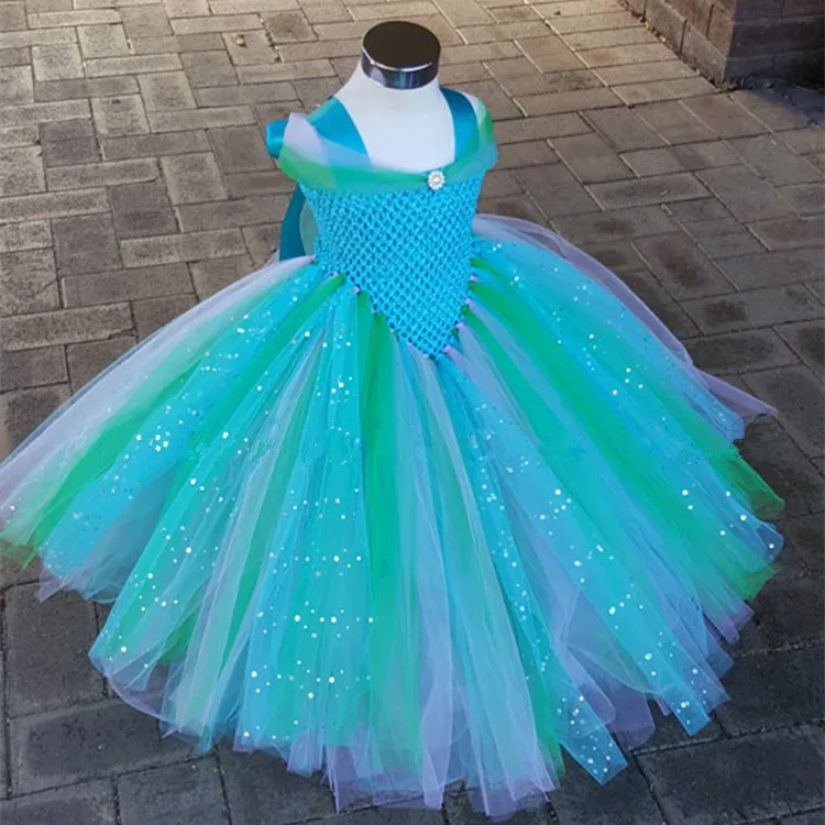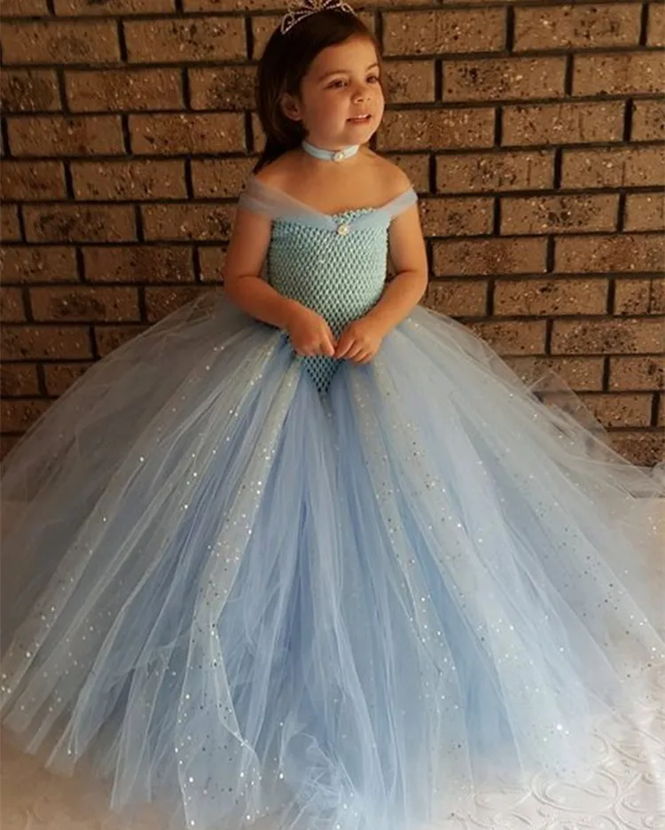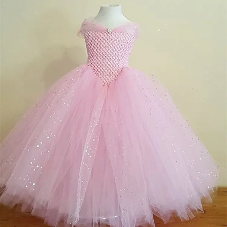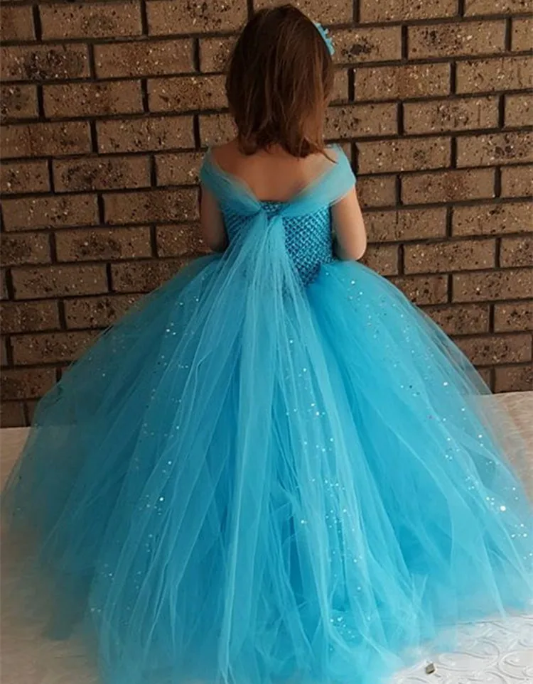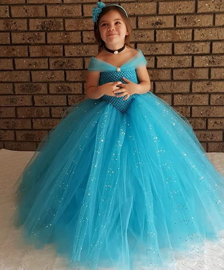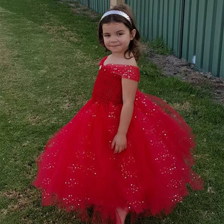 Glittery Girls Tutu Dress Elsa Belle Princess Dress Girls Party Dresses Pageant Gowns Baby Kids COS Beauty And The Beast Costume