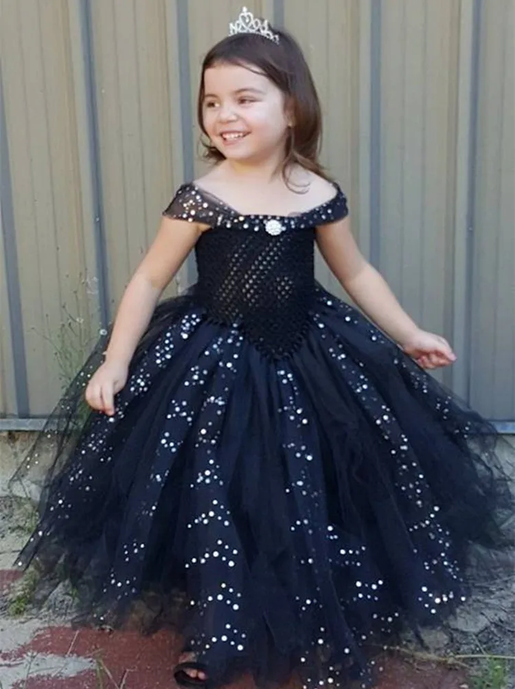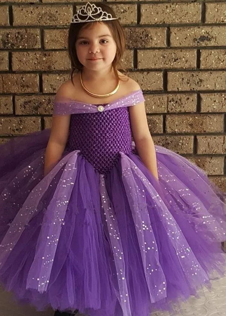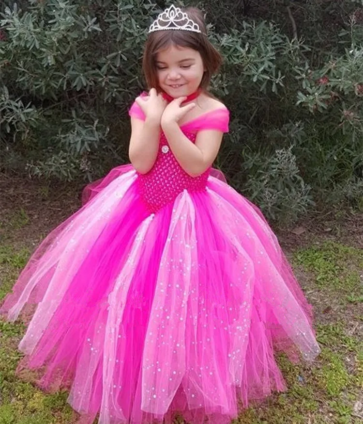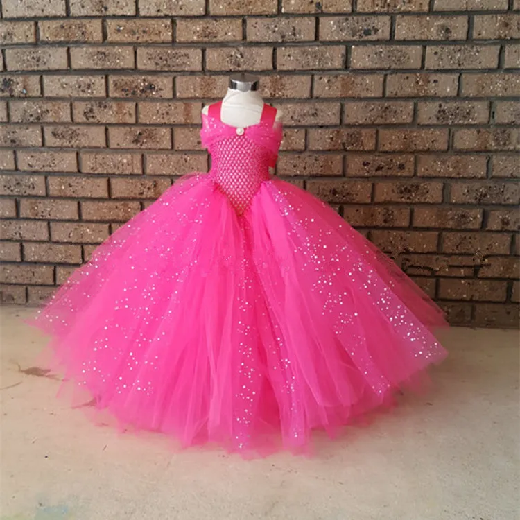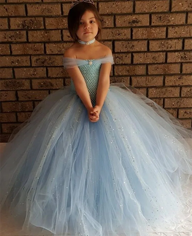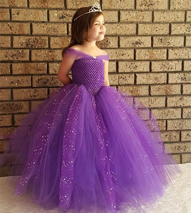 Glittery Girls Tutu Dress Elsa Belle Princess Dress Girls Party Dresses Pageant Gowns Baby Kids COS Beauty And The Beast Costume