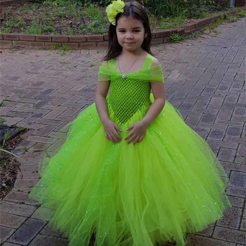 Glittery Girls Tutu Dress Elsa Belle Princess Dress Girls Party Dresses Pageant Gowns Baby Kids COS Beauty And The Beast Costume