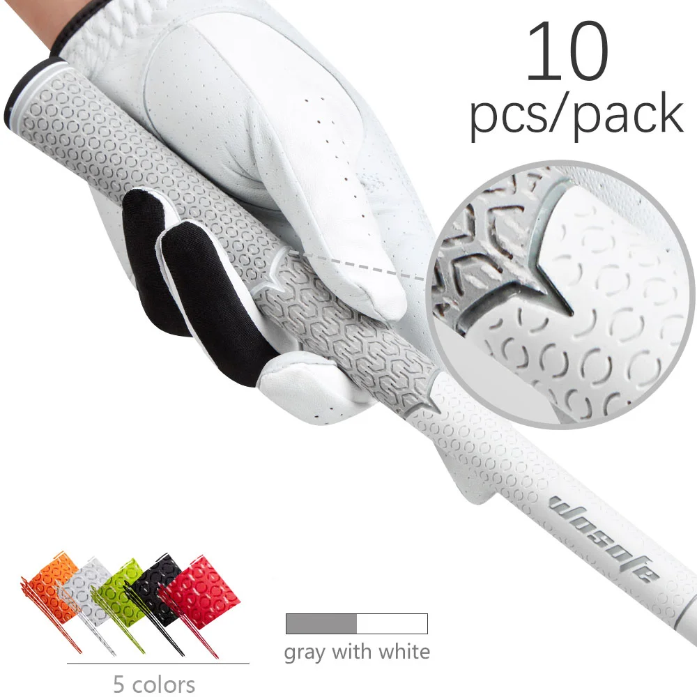 1. Material: 10 pieces / set. Natural rubber and cotton thread. The rubber is soft, comfortable and does not distort. The cotton thread absorbs sweat and prevents slipping. This healthy and environmentally friendly grip will make you enjoy golf.