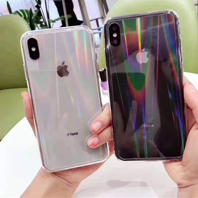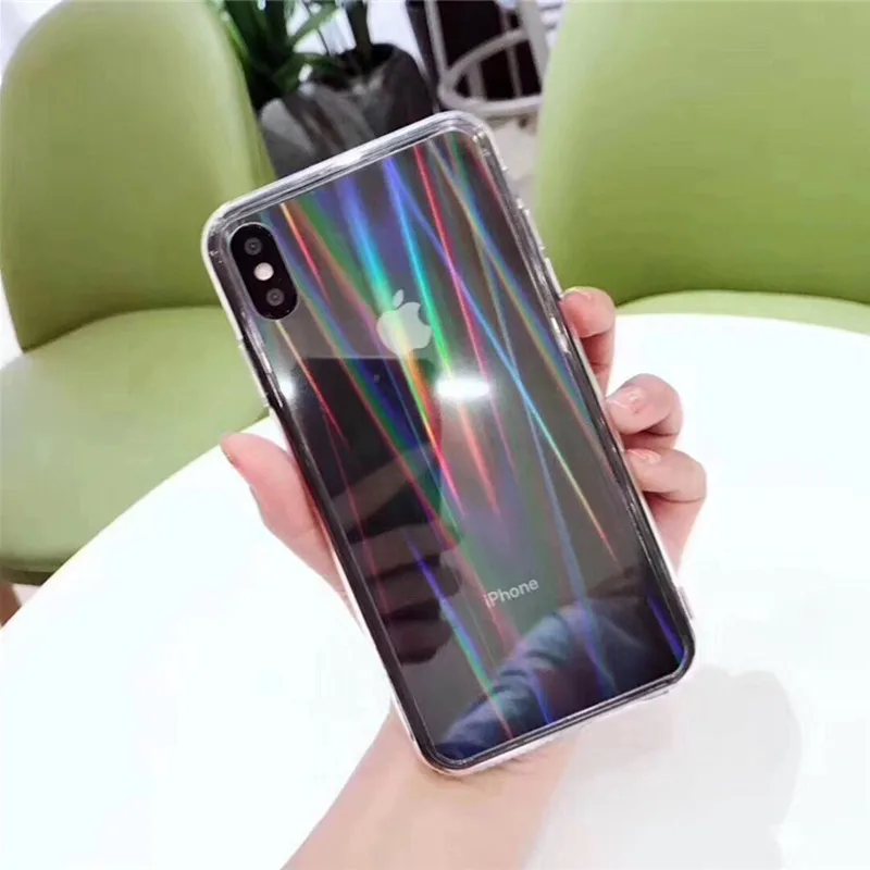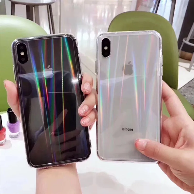Gradient Rainbow Phone Cases For iPhone 11 Pro Max X XS Max XR 8 7 6 Transparent Soft Back Case Cover Clear Laser Fundas Capa