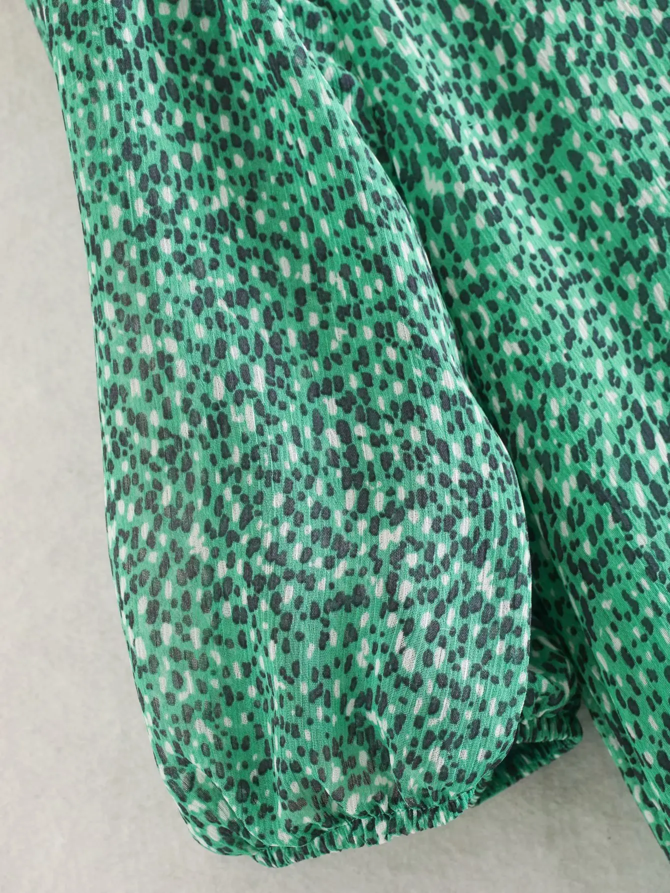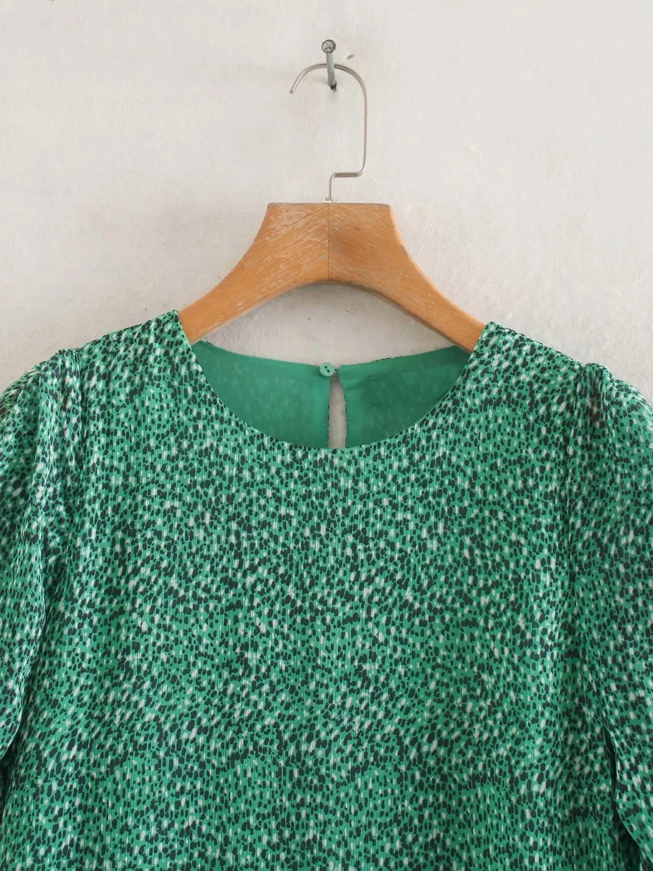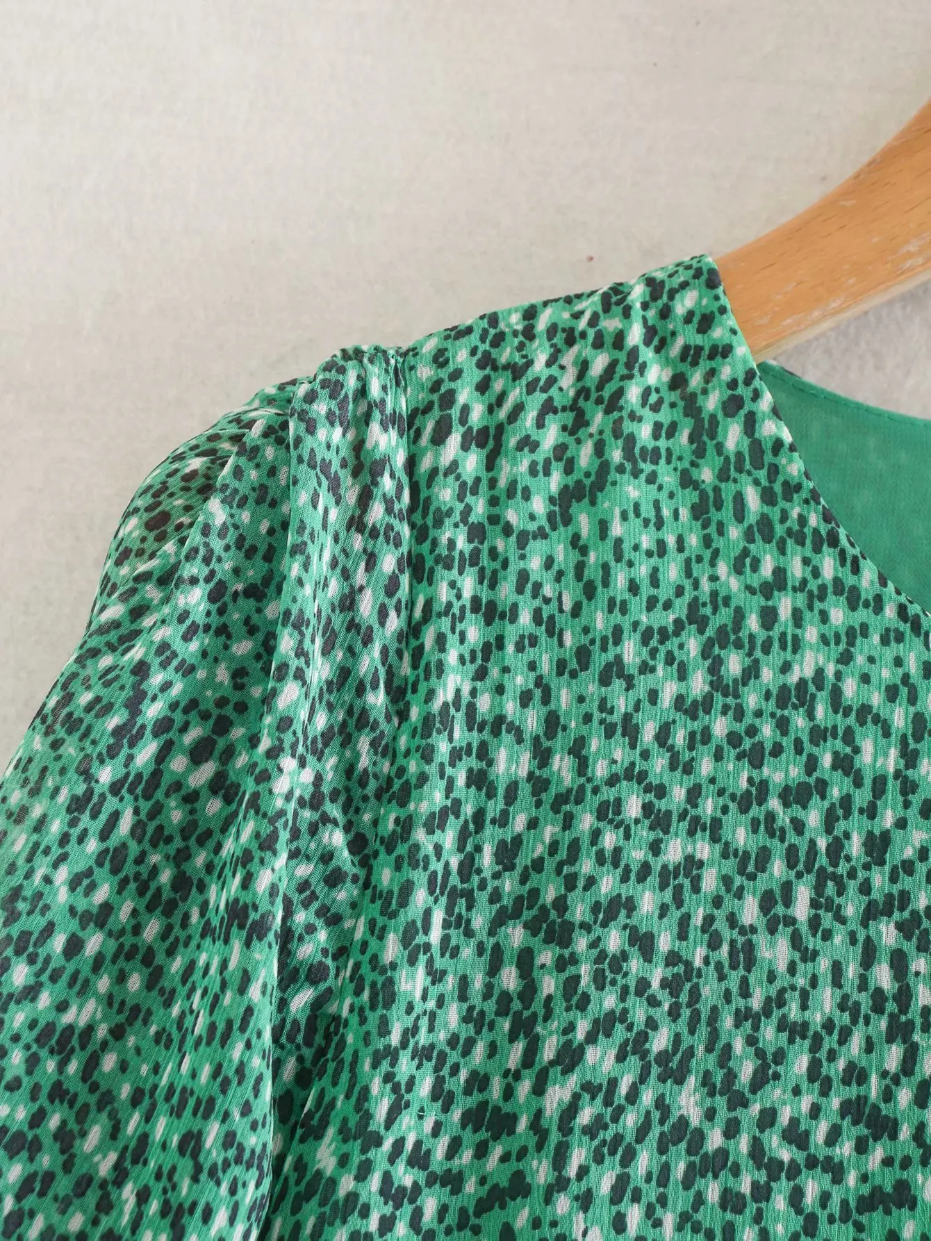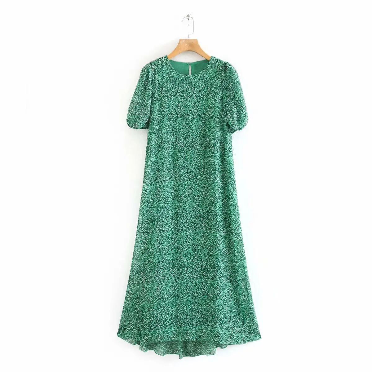 green leopard maxi dress 2020 summer short sleeve t-shirt dress women round neck bohomian clothes