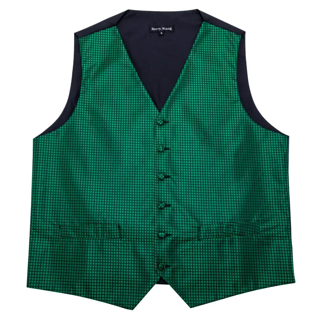 Green Suit Vest Men Paisley Waistcoat Plaid Silk Tie Handkerchief Cufflinks for Wedding Summer Vests Tuxedo MJ-2004 Barry.Wang