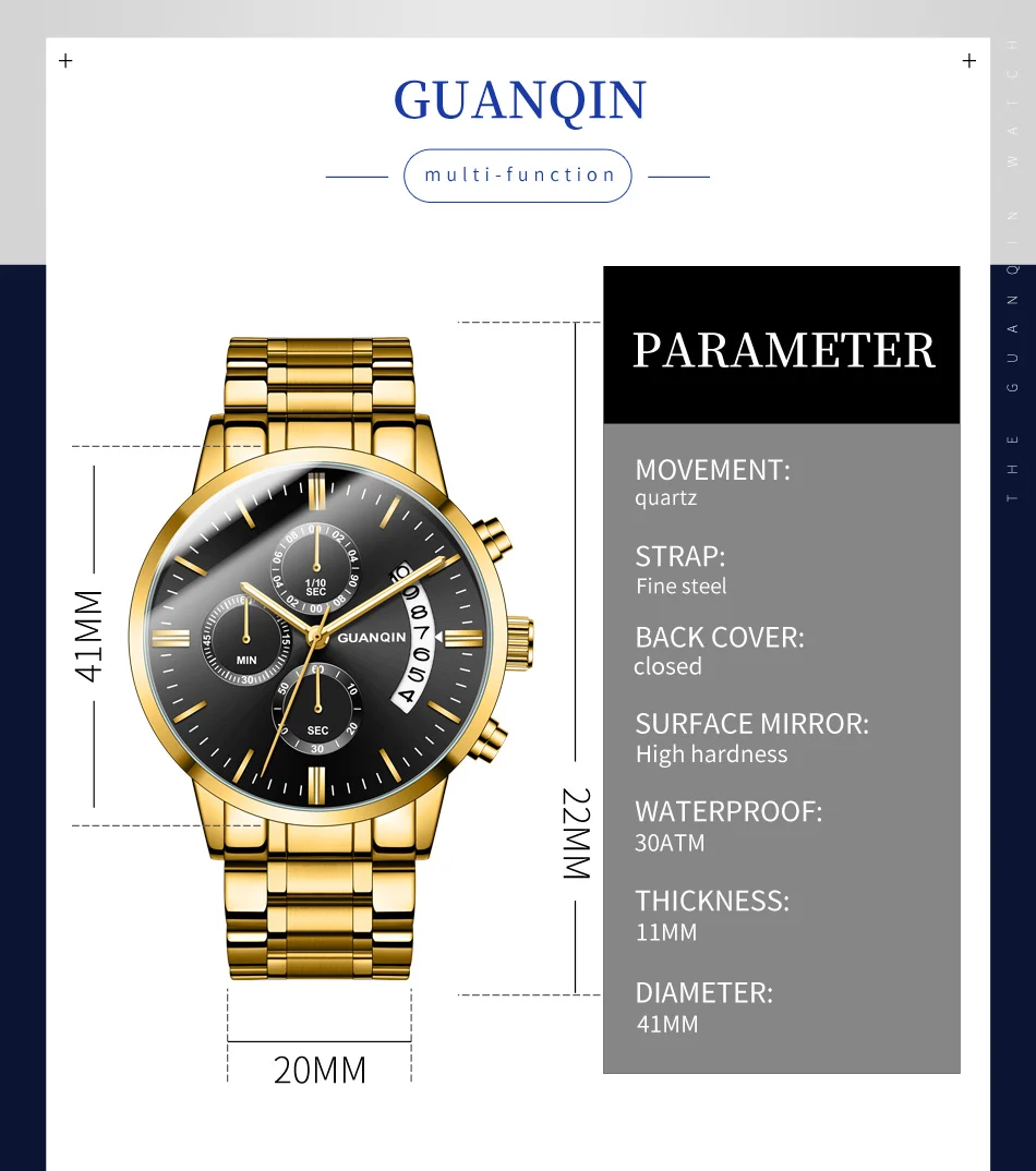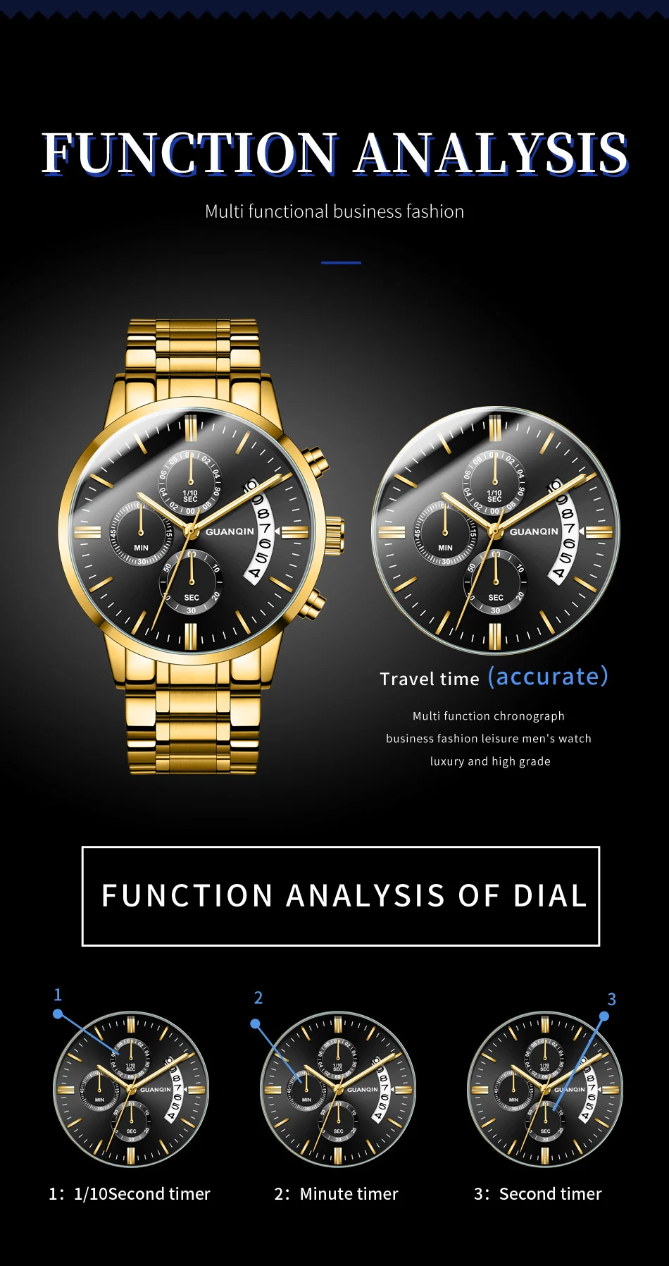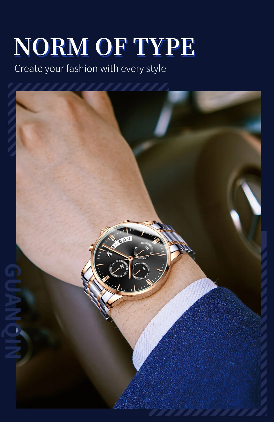 GUANQIN Relogio Masculino Men Watches Luxury Famous Top Brand Men’s Fashion Casual Dress Watch Military Quartz Wristwatches Saat