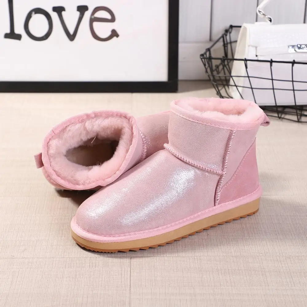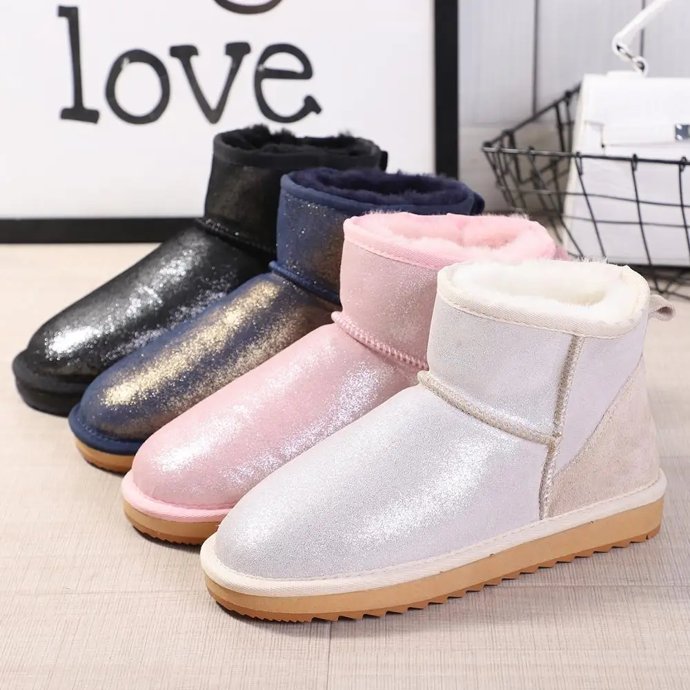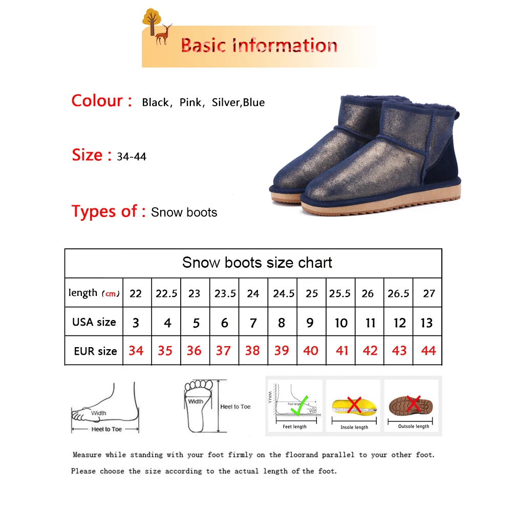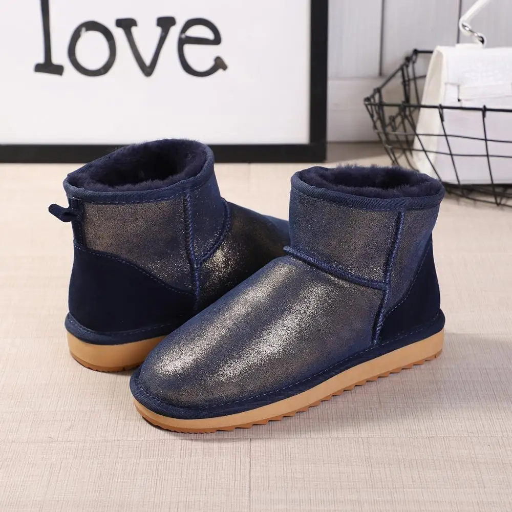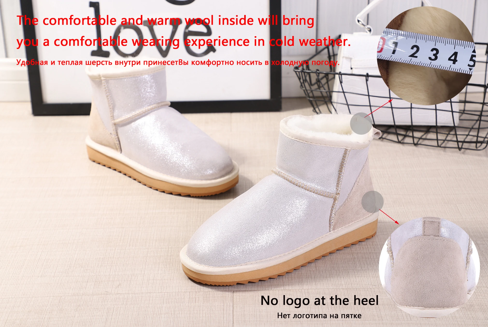 HABUCKN Fashion Classic Cowhide Leather Wool Lined Women Winter Ankle Snow Boots for Women Short Basic Winter Shoes Large Size