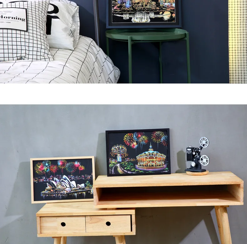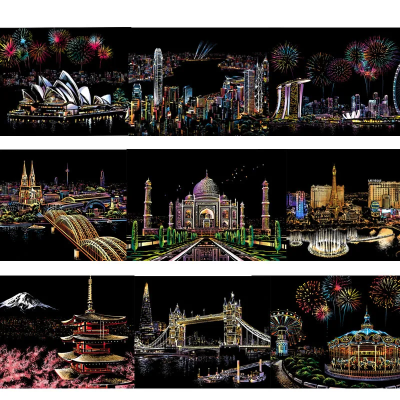 Handmade DIY Scratch Art Painting Toy Colorful City Night View Painting Learning Card Scratching Toy Kids Creative Birthday Gift