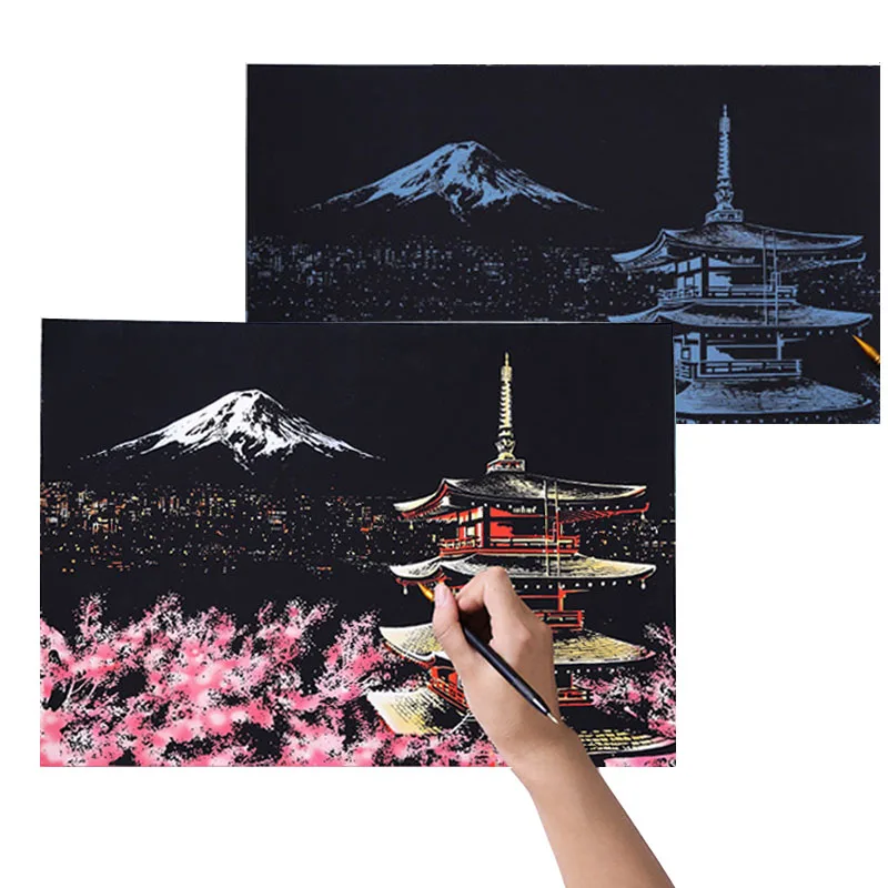Handmade DIY Scratch Art Painting Toy Colorful City Night View Painting Learning Card Scratching Toy Kids Creative Birthday Gift