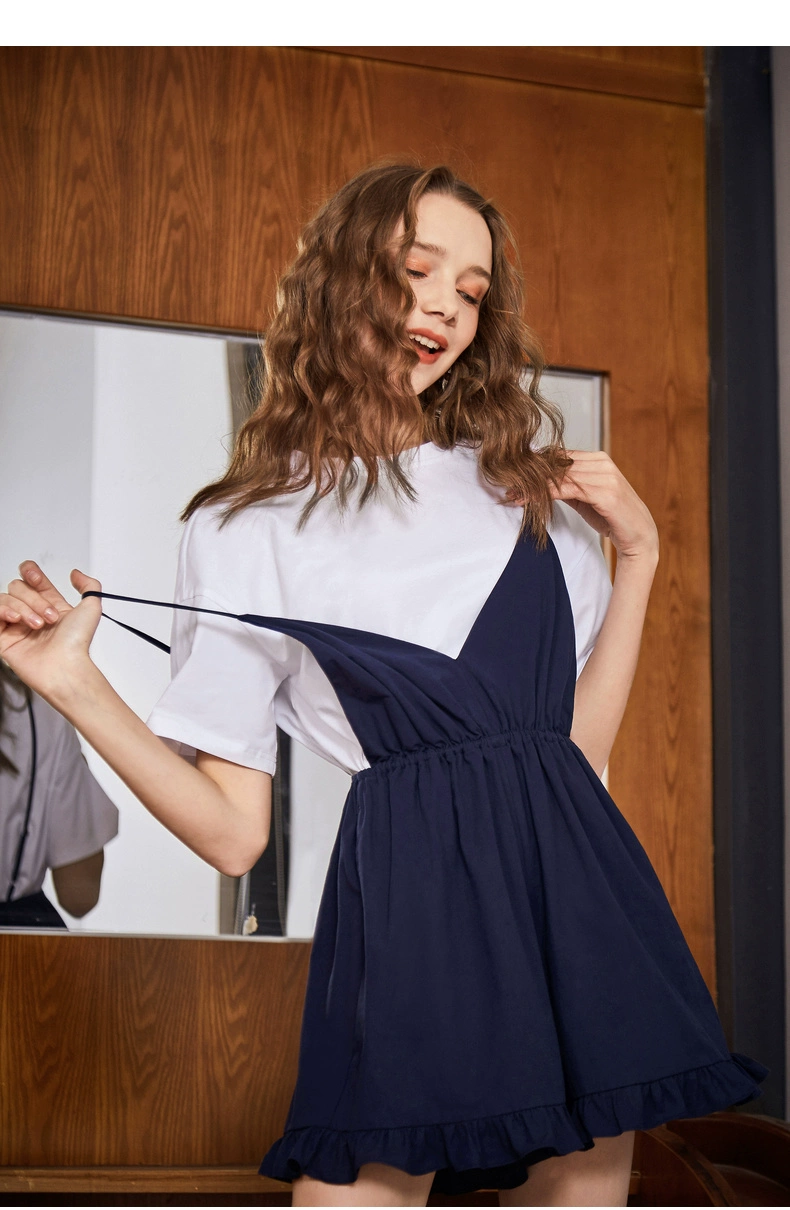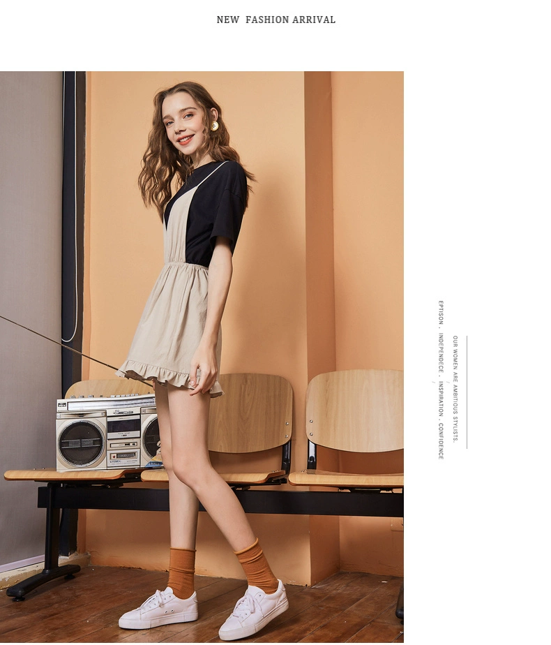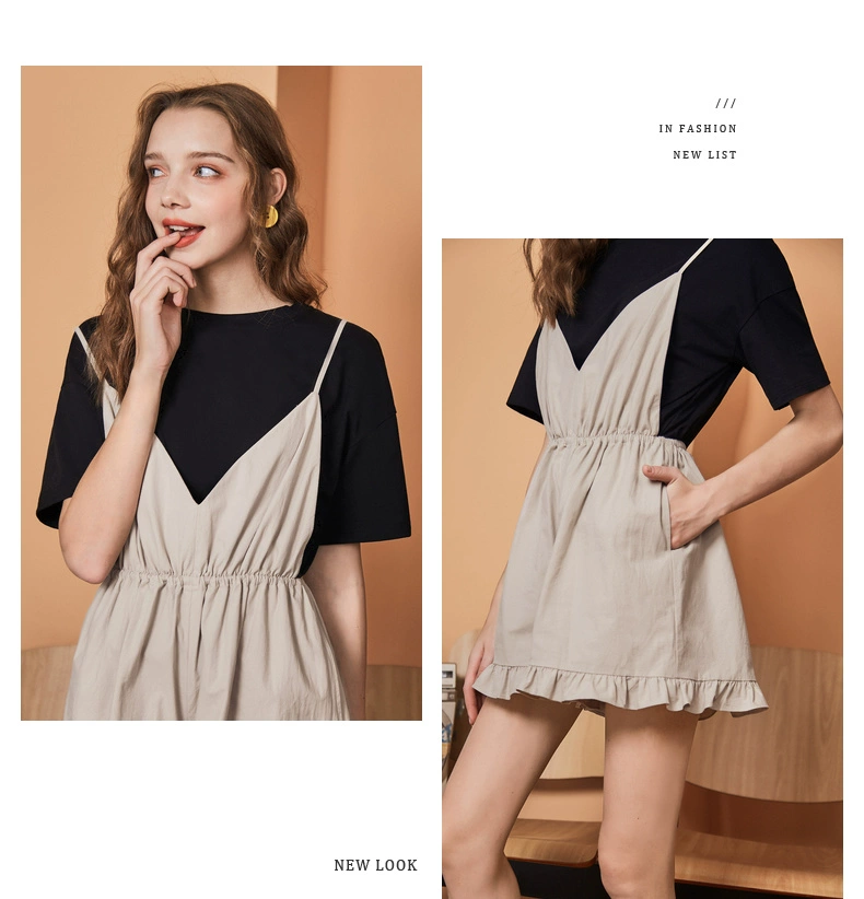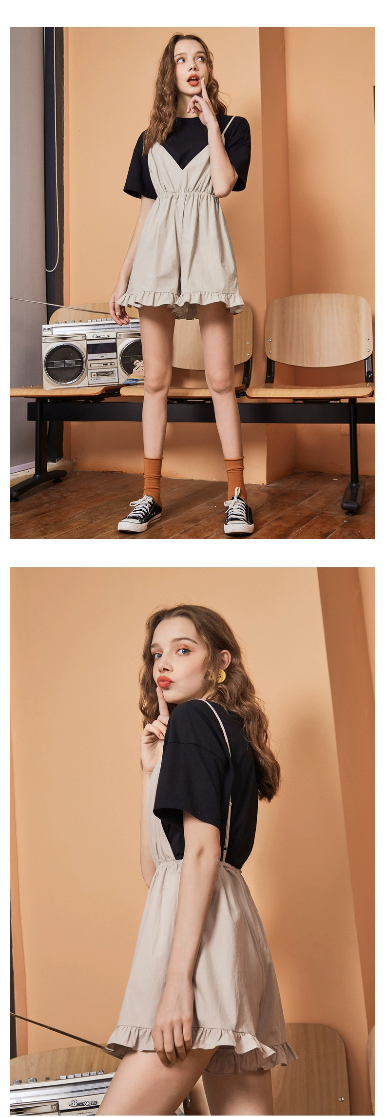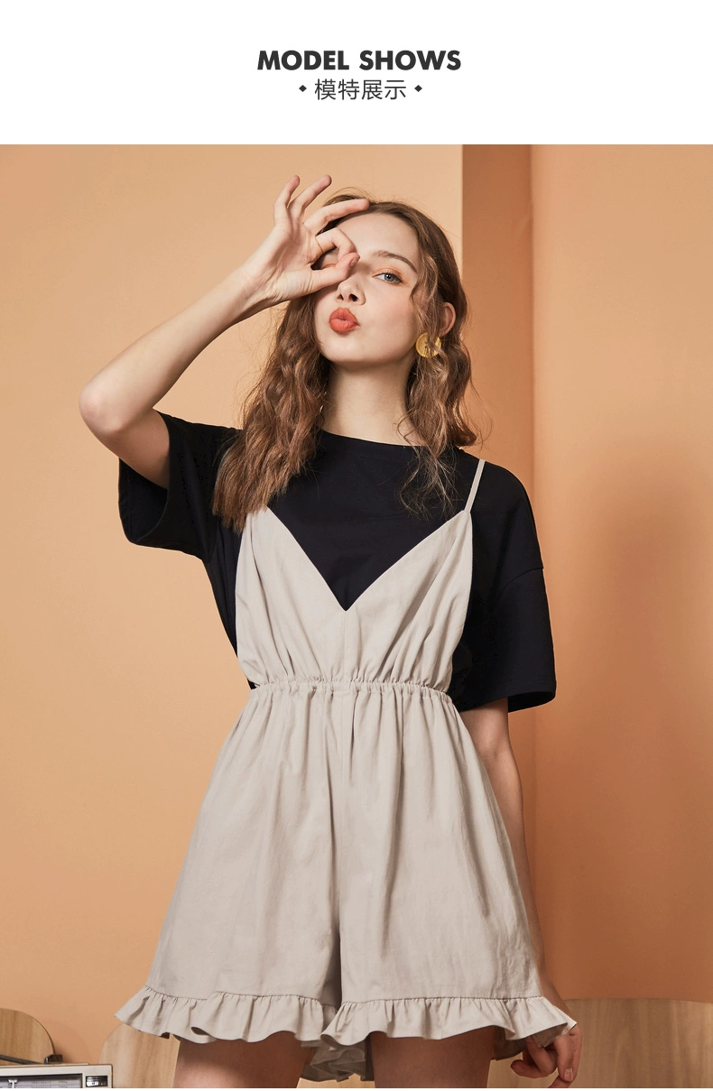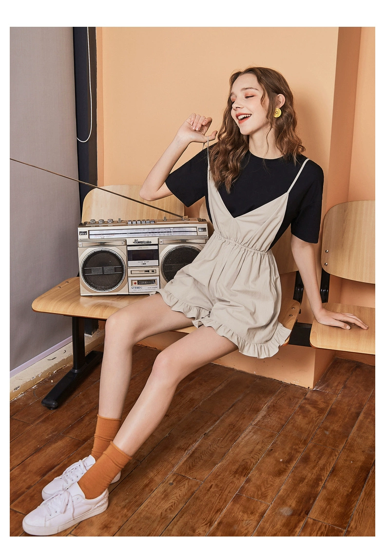 HELIAR Women Playsuits and T-shirts Lady Solid Tees Spaghetti High Waist Rompers Two Pcs Outfits Cloth Summer Female Playsuit