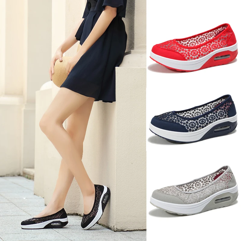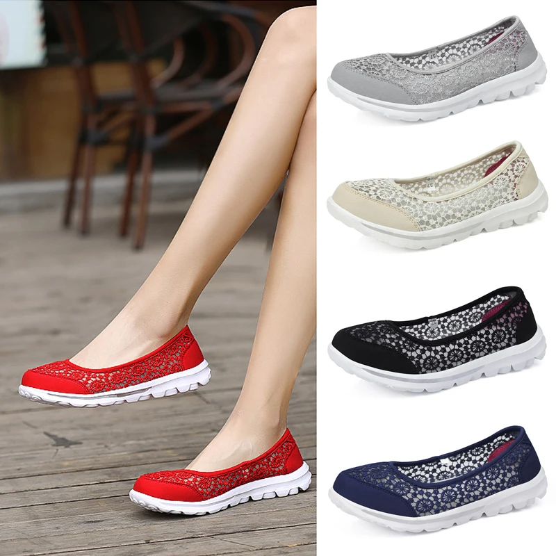 Summer Hollow Lace Flat Shoes Women Breathable Shallow Boat Platform Shoes Non Slip Ladies Shoes Loafers Casual Fashion Black