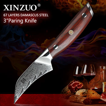 XINZUO 3″ PRO Fruit Knife Damascus Steel Kitchen Knives Tools Japanese VG10 Core Razor Sharp Blade with Rosewood Handle