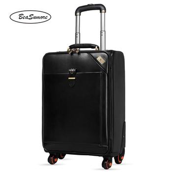 BeaSumore Men Genuine Leather Rolling Luggage Spinner Retro Cowhide Wheel Suitcases 16 inch Cabin Business Trolley
