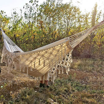 Fringed Macramé Hammock Cotton Tree Hammock Swing Bed for Patio