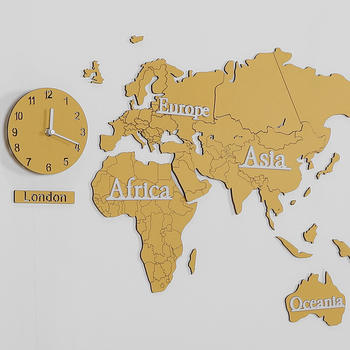 Nordic Large 3D Wall Clock Stickers Creative Wooden Silent Clocks Wall Home Decor World Map Living Room Duvar Saati Gift D017